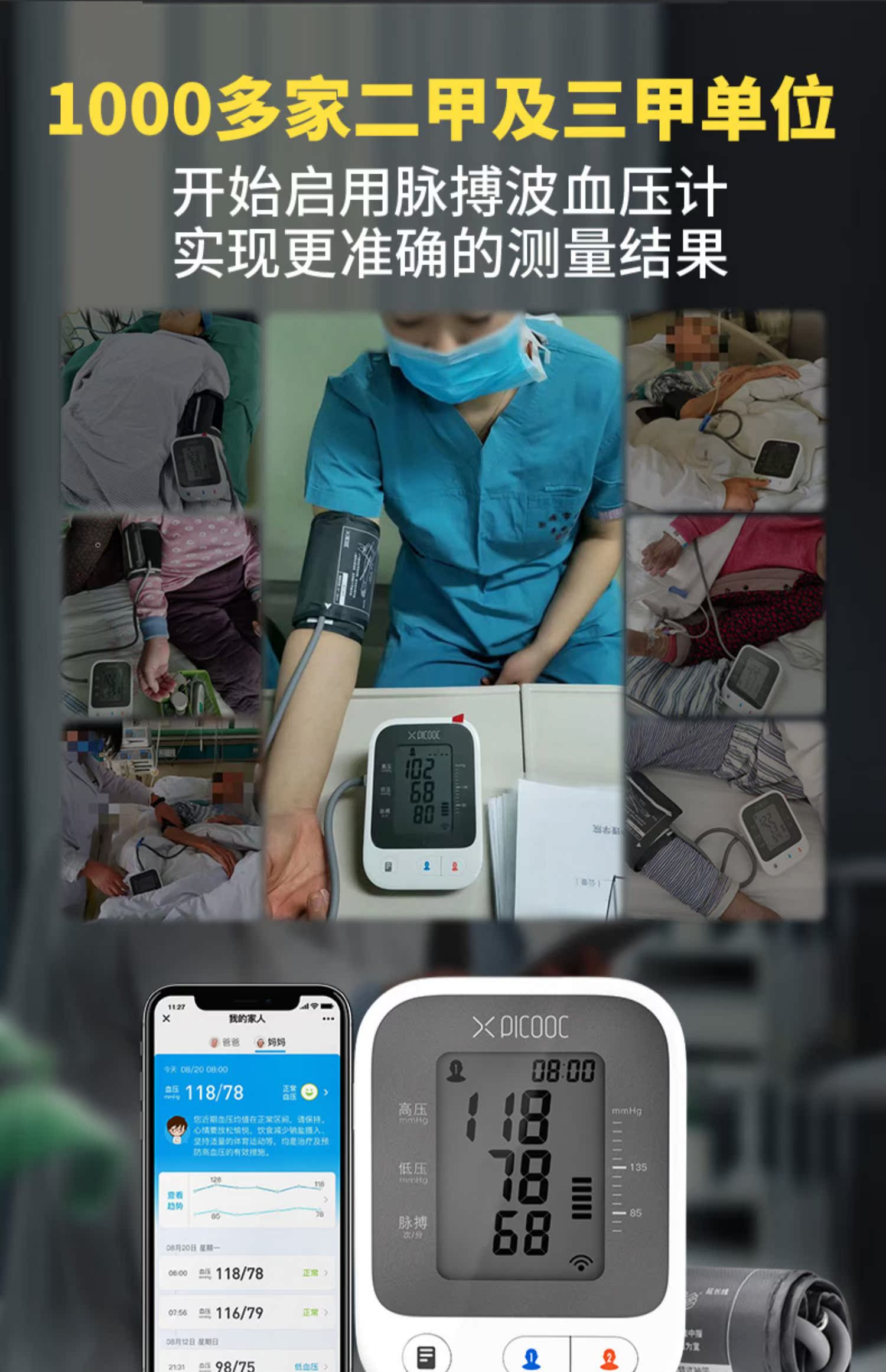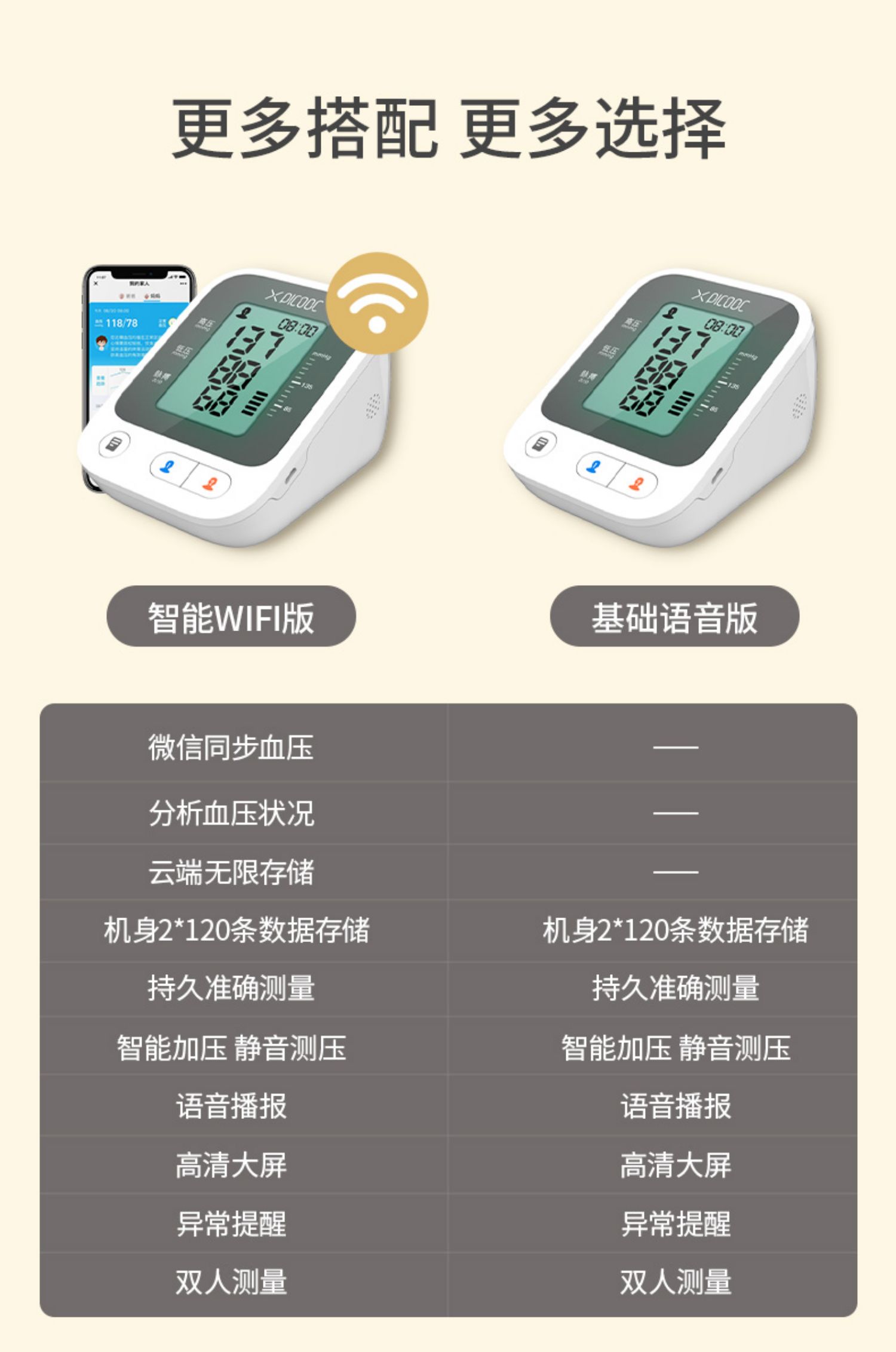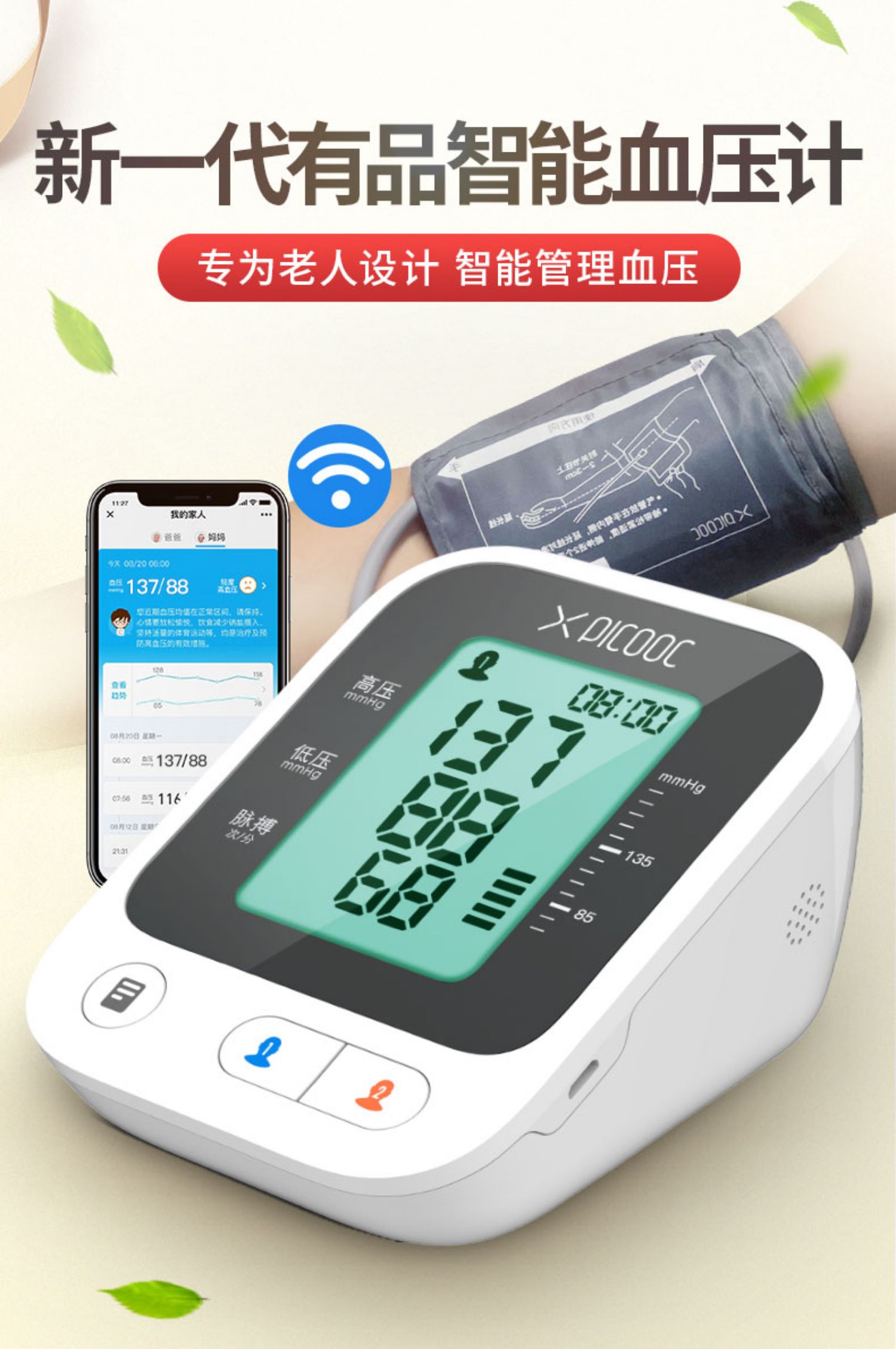 【4.9高评分】上臂式电子血压计,大屏显示,智能加压,测量平均值,语音播报,360度立体袖带。双人2×120条数据,一键式操作,微信实时呈现爸妈的血压报告,适应各类人群使用。