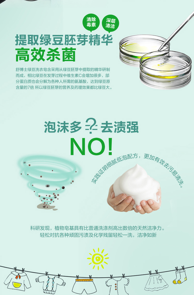 【舒博士】线下10083家实体!店植物皂基,提取绿豆胚芽精华,抑菌,不伤手,天然温和护肤,无磷,无防腐剂,无荧光剂,无矿物油。经过严格的国际质检,均取得了有机安全认证。