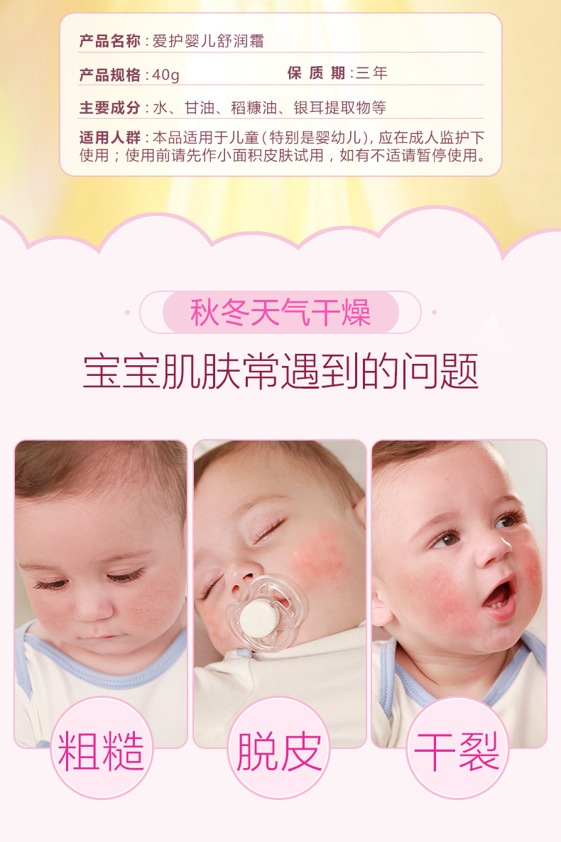 【下单就送润唇1支,第2件半价】爱护旗舰店!!15年专注护理,新生儿保湿滋润儿童面霜,蕴含稻糠油1+1金质成分,滋润舒缓,修护干红皴裂,呵护宝宝娇嫩肌肤【赠运费险】