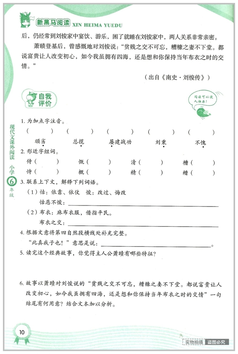 新黑马阅读现代文课外阅读,新黑色马阅读六年级阅读理解训练小学语文新课标,6年级上下册通用,第九次修订版测试题训练辅导书