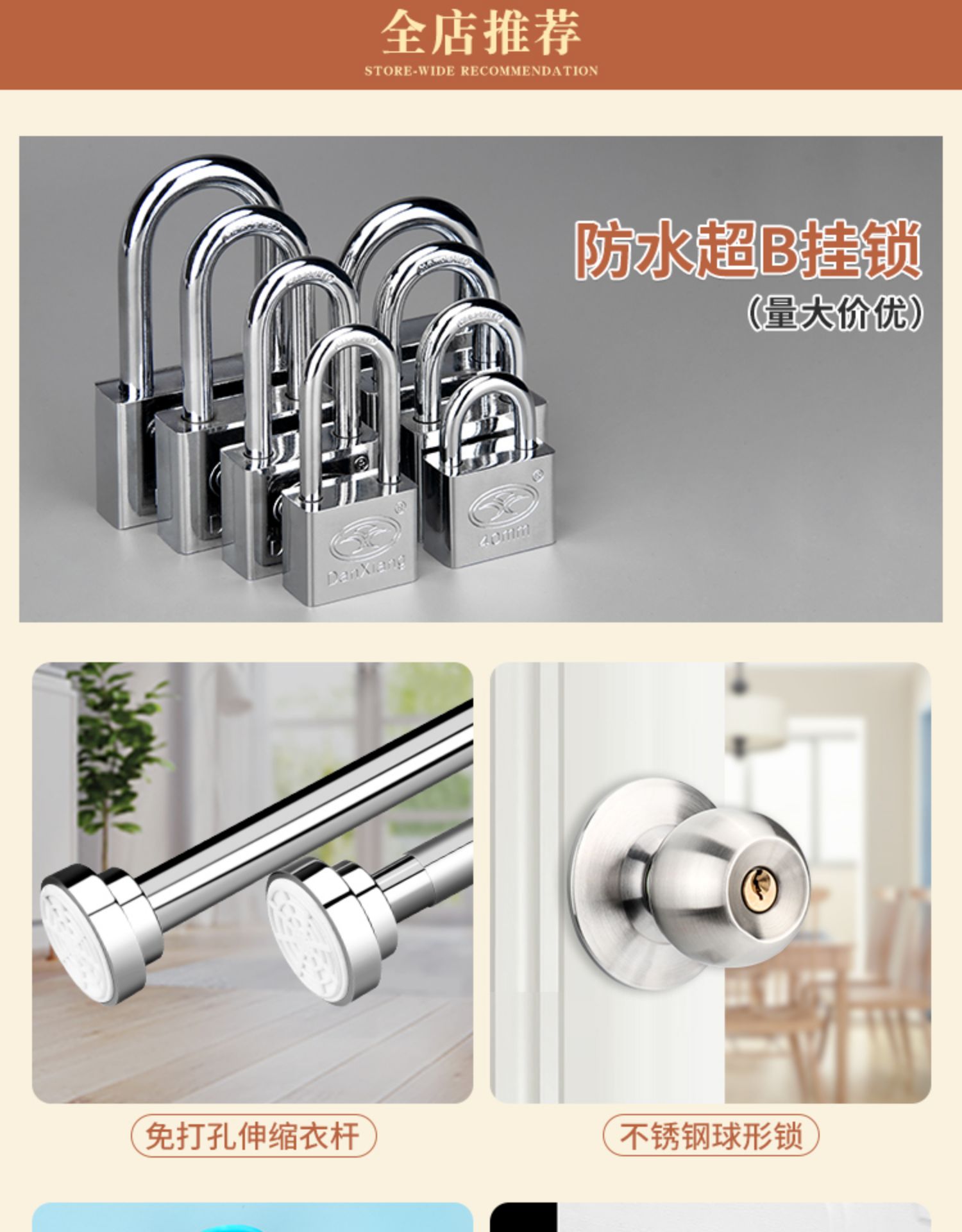 不锈钢挂锁,防水防锈,防撬防盗,加粗加厚,抗液压剪,为家的安全增添一份保障!