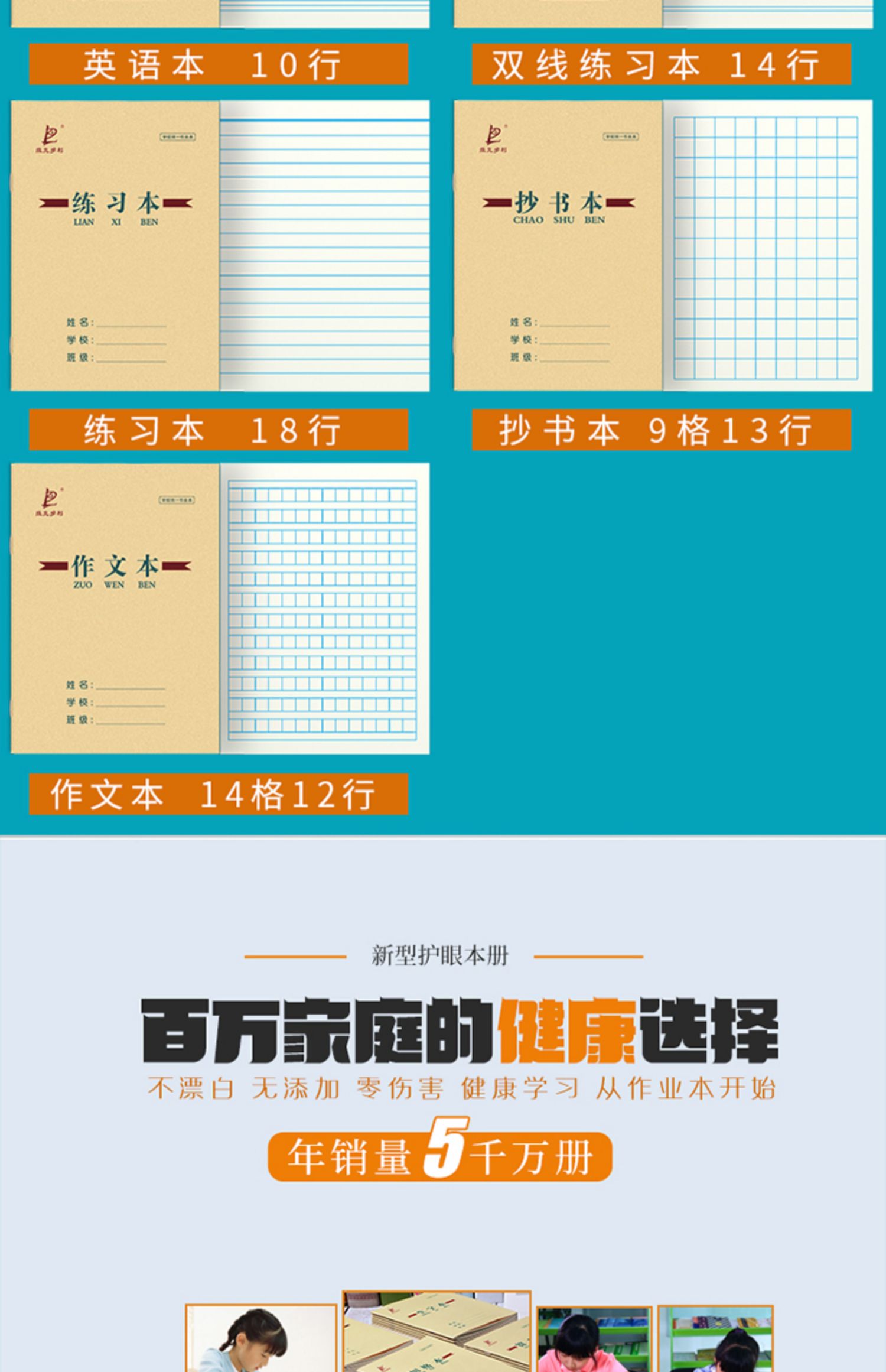 多款可选,米黄色护眼纸张,缓解视力疲劳,耐写耐擦,让孩子高效学习,事半功倍,健康美观护眼本子,学习必备!