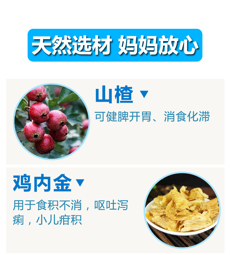 鸡内金山楂咀嚼片儿童健脾开胃颗粒,宝宝进食好搭档,解决宝宝没食欲,营养不均衡,酸酸甜甜宝宝都爱喝,让宝宝吃饭不是问题。
