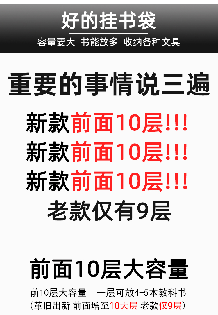 【送加粗绕桌绳+多功能挂钩】防滑皮革,绑脚带,9大格+2小格,可容纳40本书,承重50kg,高中生大容量学生书桌挂袋多功能书立课桌神器,送给学子开学礼、让桌面整洁起来啊~~~【赠运险费】