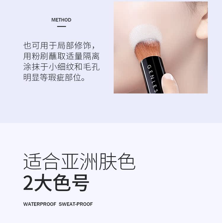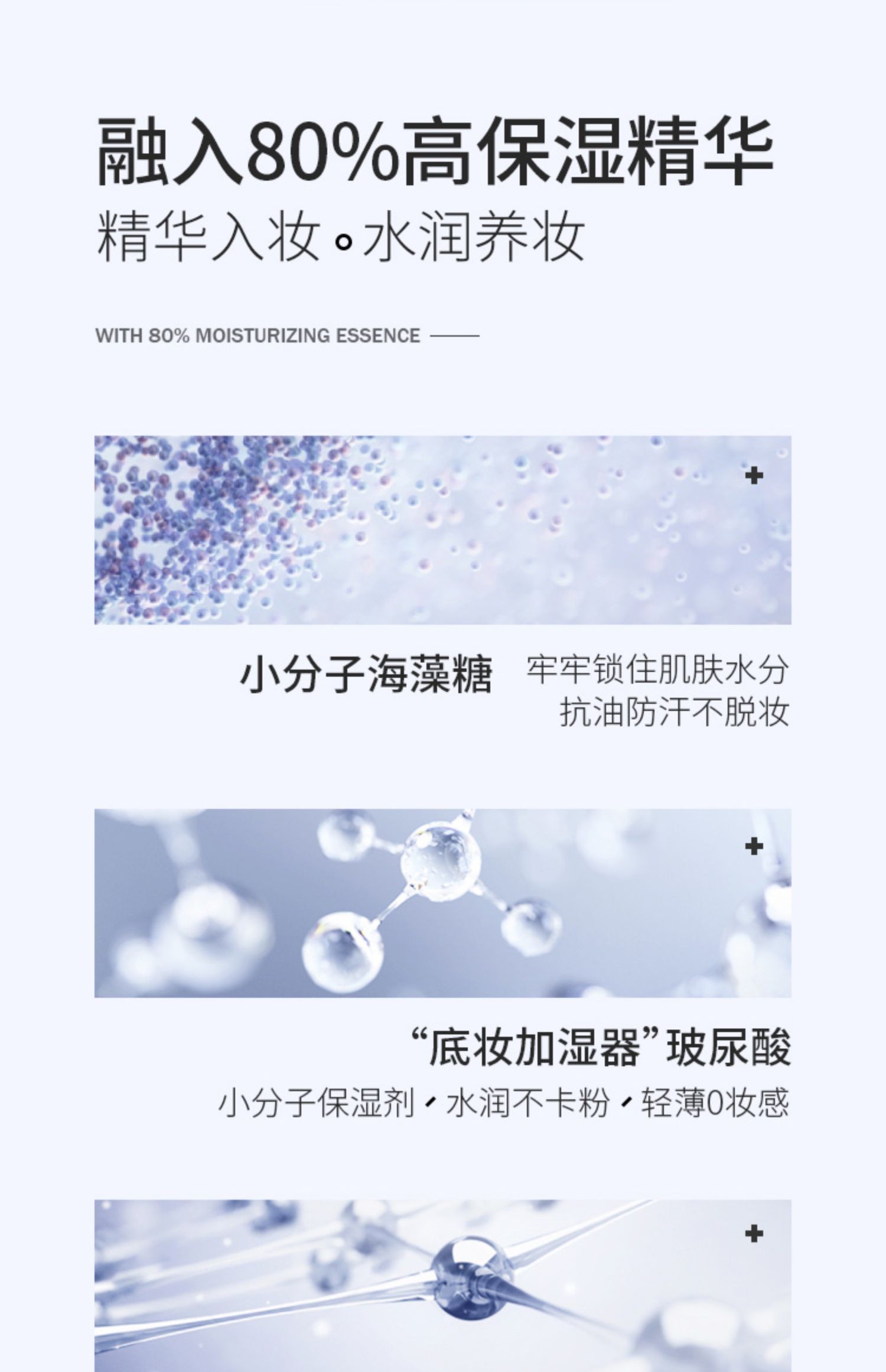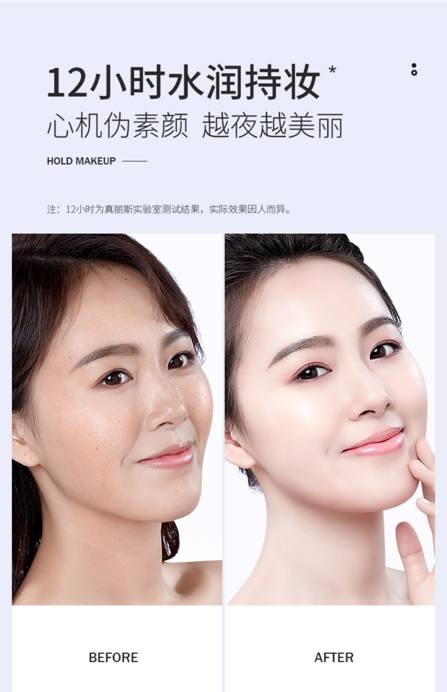 【性价比高】买一送一,一次拥有两个颜色,保湿不卡粉,防油防汗不脱妆,微囊技术,80%高保湿精华。香奈儿泡泡粉底液同款精华包裹技术。含小分子海藻糖,锁住水分。含底妆加湿器玻尿酸。
