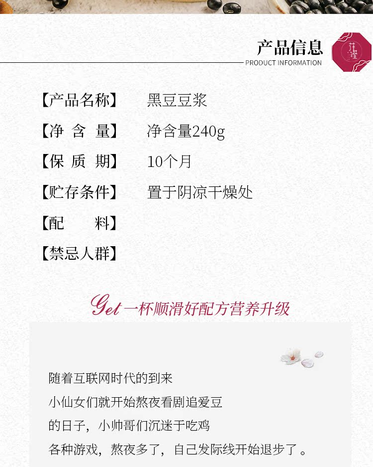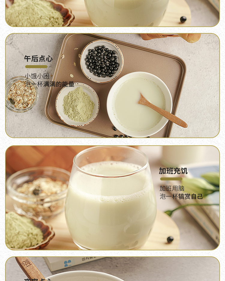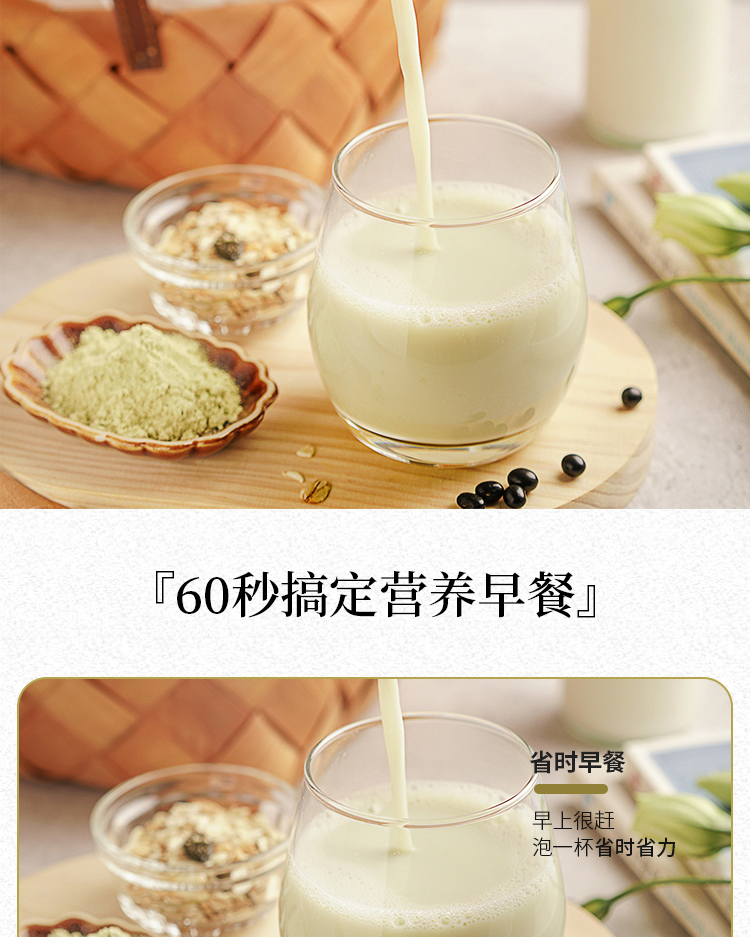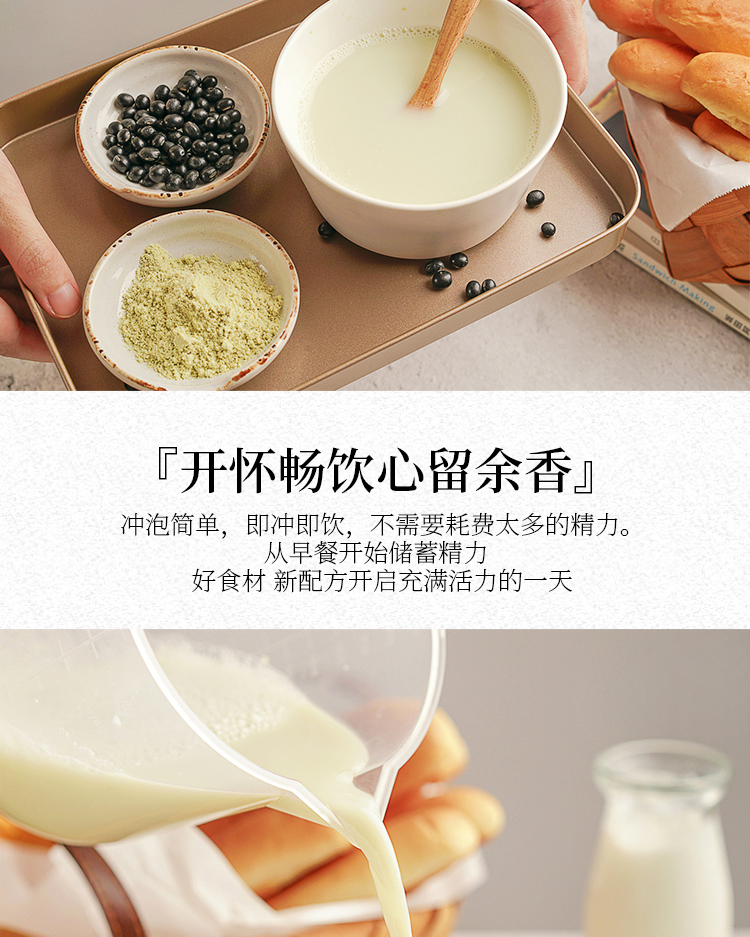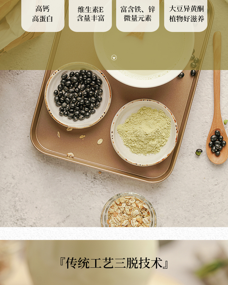 选用非转基因大豆,无添加!富含维生素A、D,富含矿物质,蛋白质,即冲即食,喝一口暖暖的,早餐来一杯倍儿营养!家里人都爱喝~