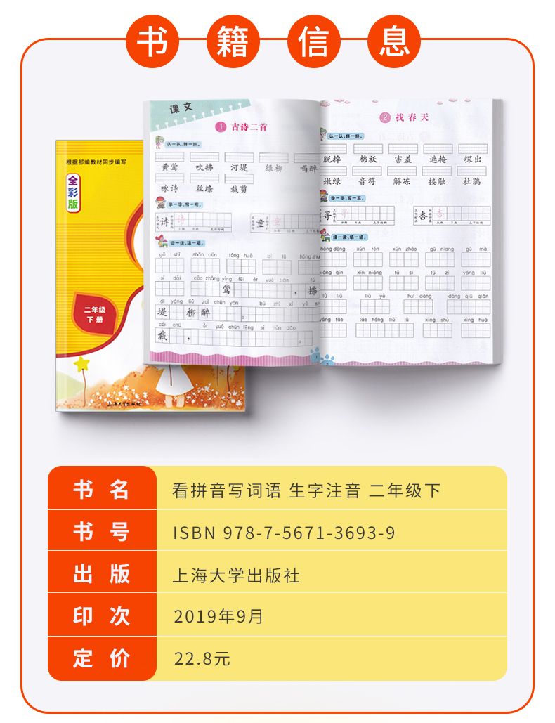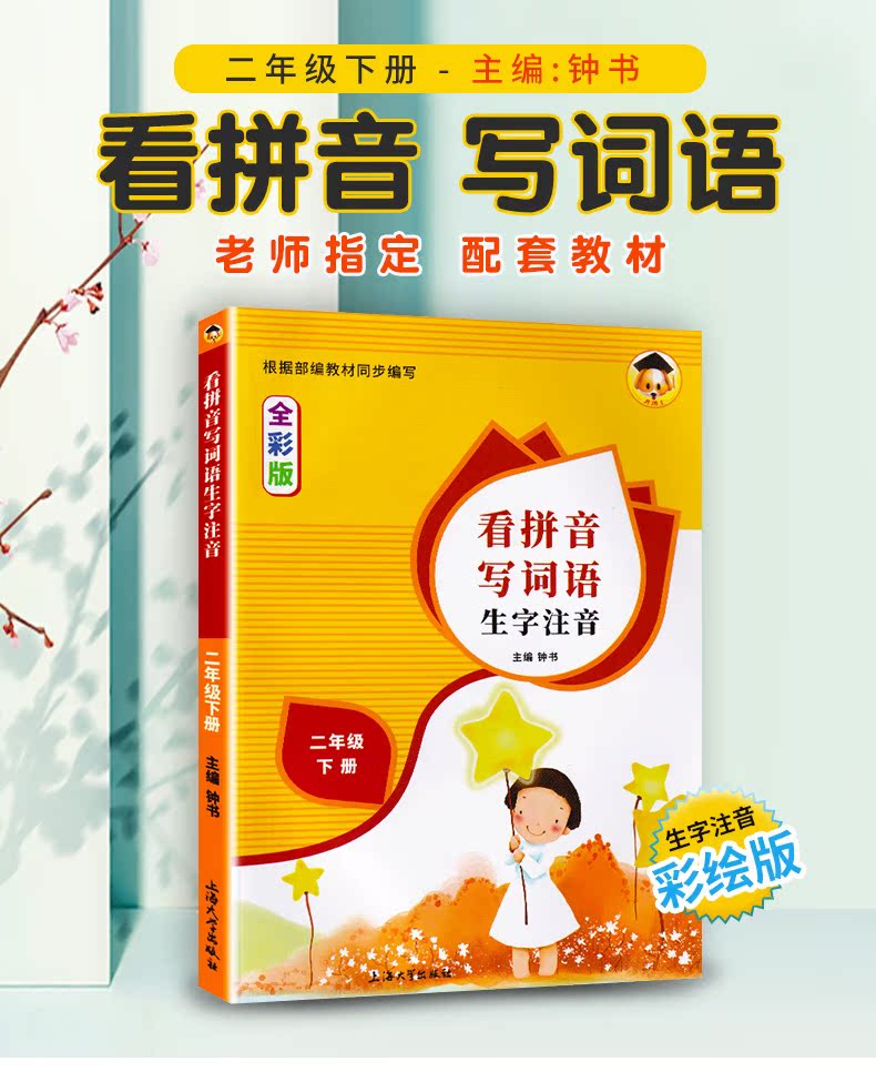 【限时5.1元抢购】【人教版】看拼音写词语二年级下册,内容丰富多样!单本近50页超厚实!字体印刷清晰可见,保护眼睛,便于书写!看拼音写词语专项训练,巩固知识,是小学生练字识字必备书籍!!