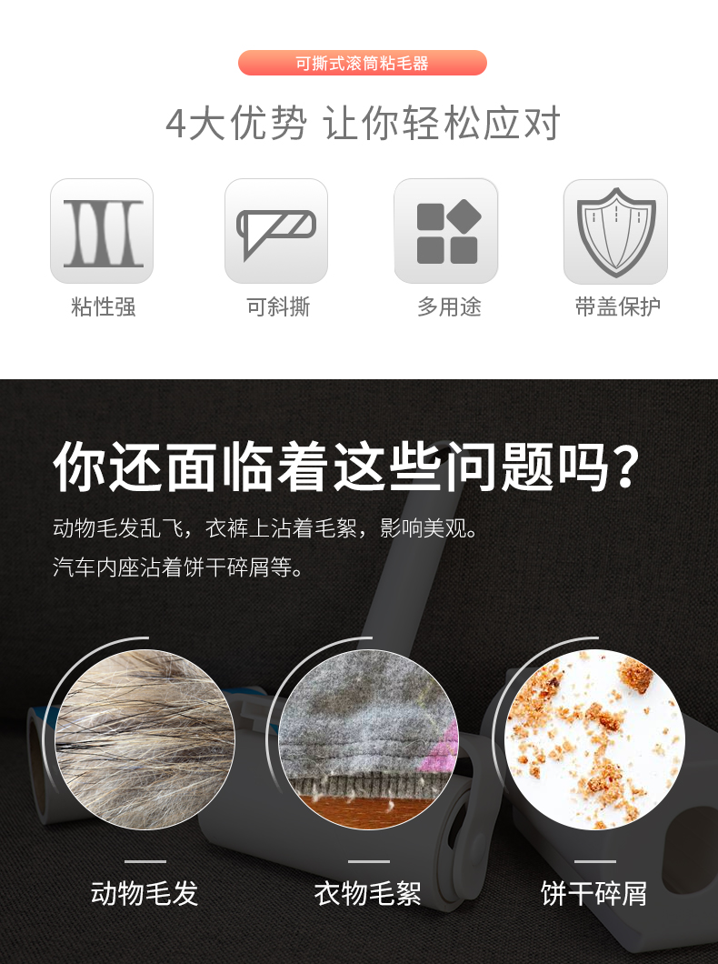 清毛烦恼交给TA!小萌主粘毛器手柄+1卷纸!活动1.9!强力粘毛,方便的斜撕设计,衣服,沙发,地板都能粘!还不伤衣服呢!