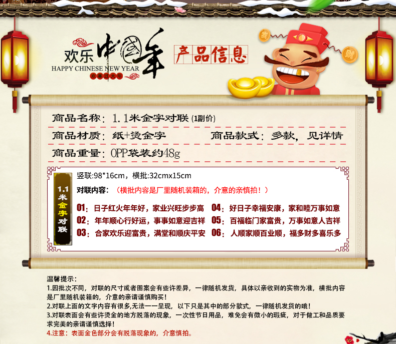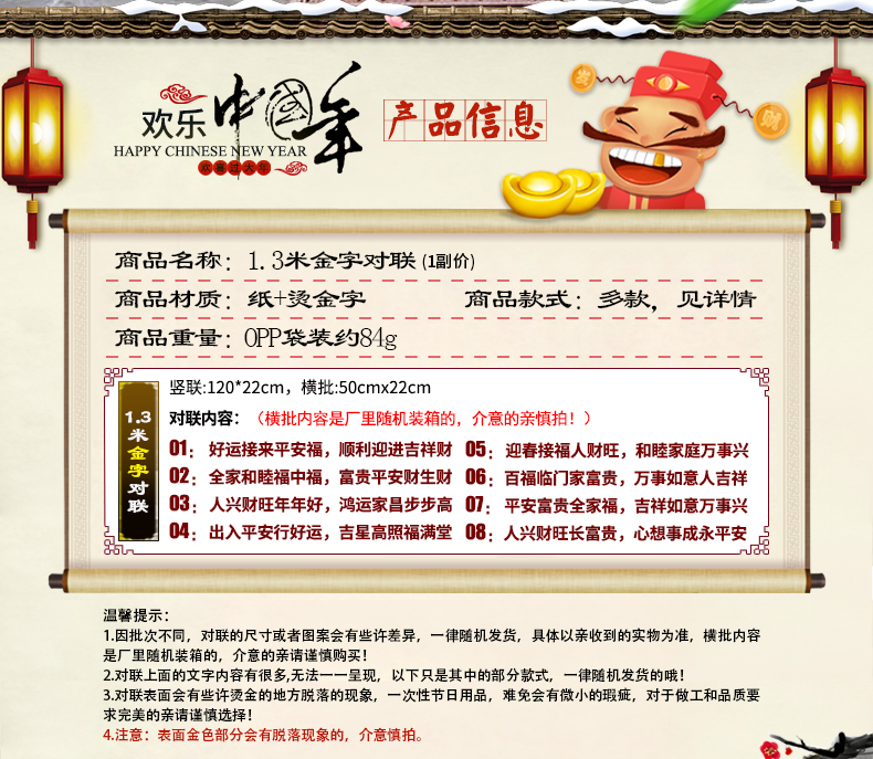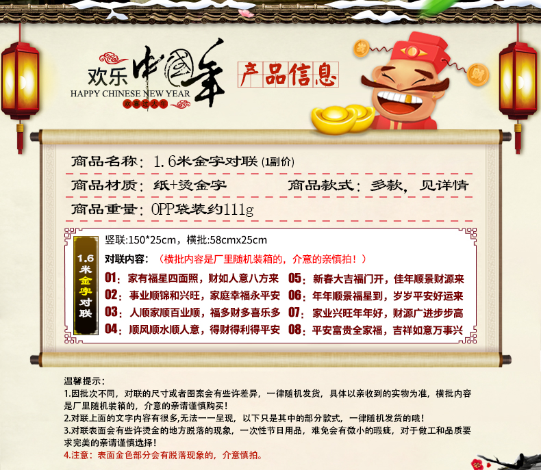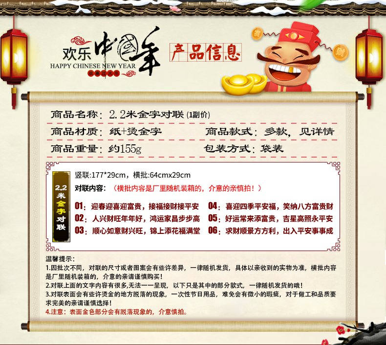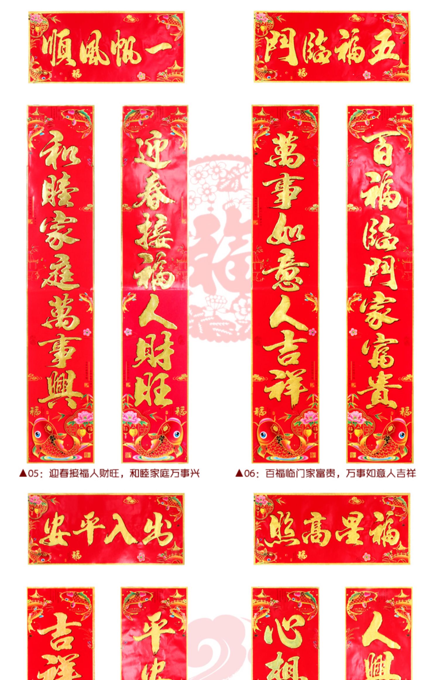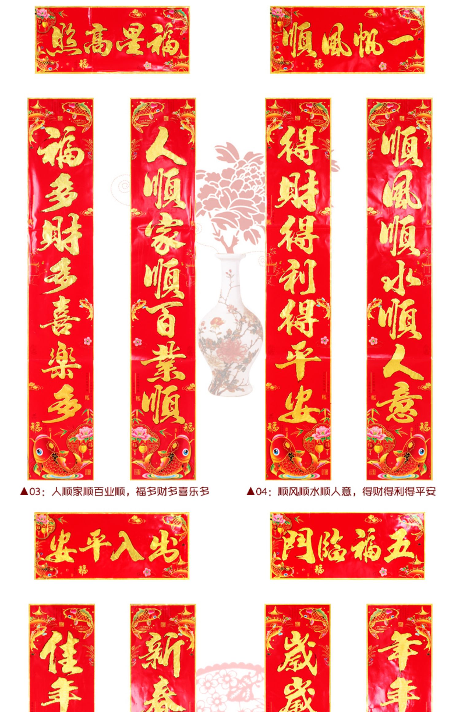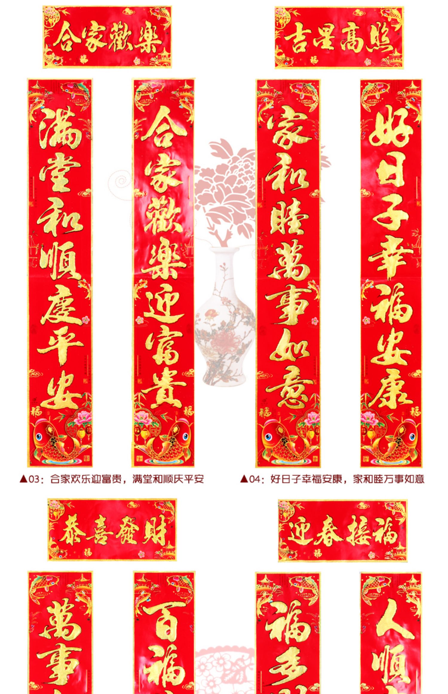 【春节对联金字对联】吉祥对联,烫金字体,字迹清晰不易掉色,高端大气,多种款式,让你一年喜气洋洋!红红火火!