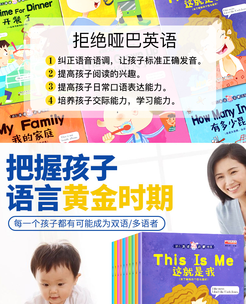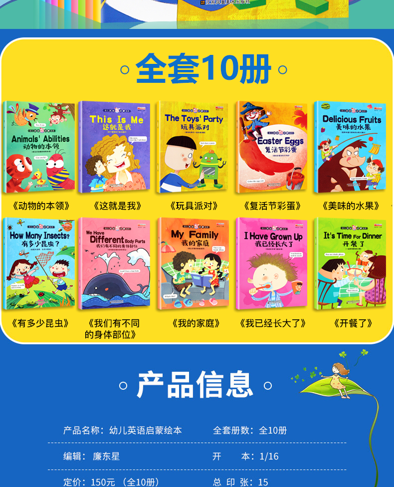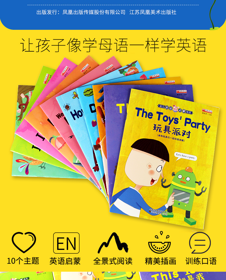 幼儿英语启蒙绘本全10册,10大精选主题,内容丰富,全情景式阅读,贴近生活,让孩子像学母语一样学英语!
