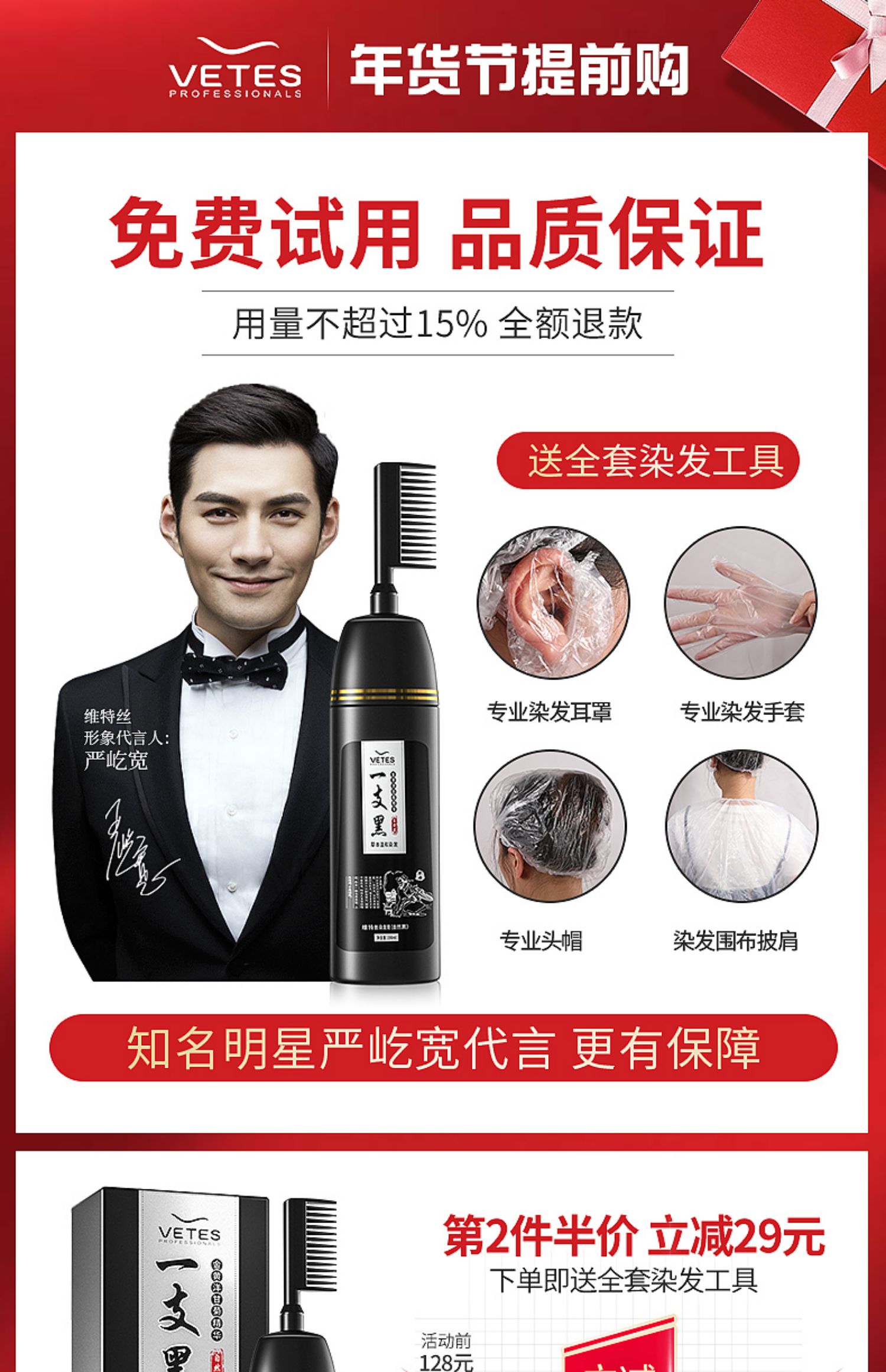 第二件半价【送全套染发工具】知名明星严屹宽代言!无需调配,操作方便,梳发=染发,草本温和护发配方,健康安全,轻松搞定染发,15分钟快速上色~赶紧给爸妈买上!