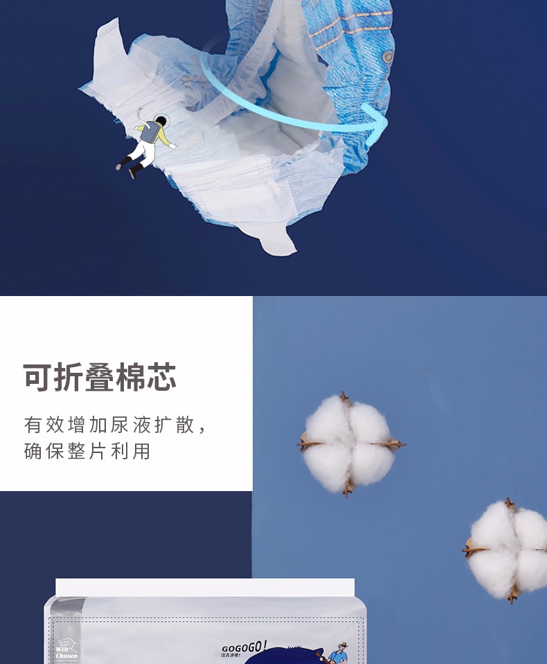 【第二件半价】炫酷牛仔风纸尿裤,透气棉质材质,轻薄干爽,舒而不漏,足量高分子,吸水效果佳,前后防漏,礼貌出行,无乱尿烦恼