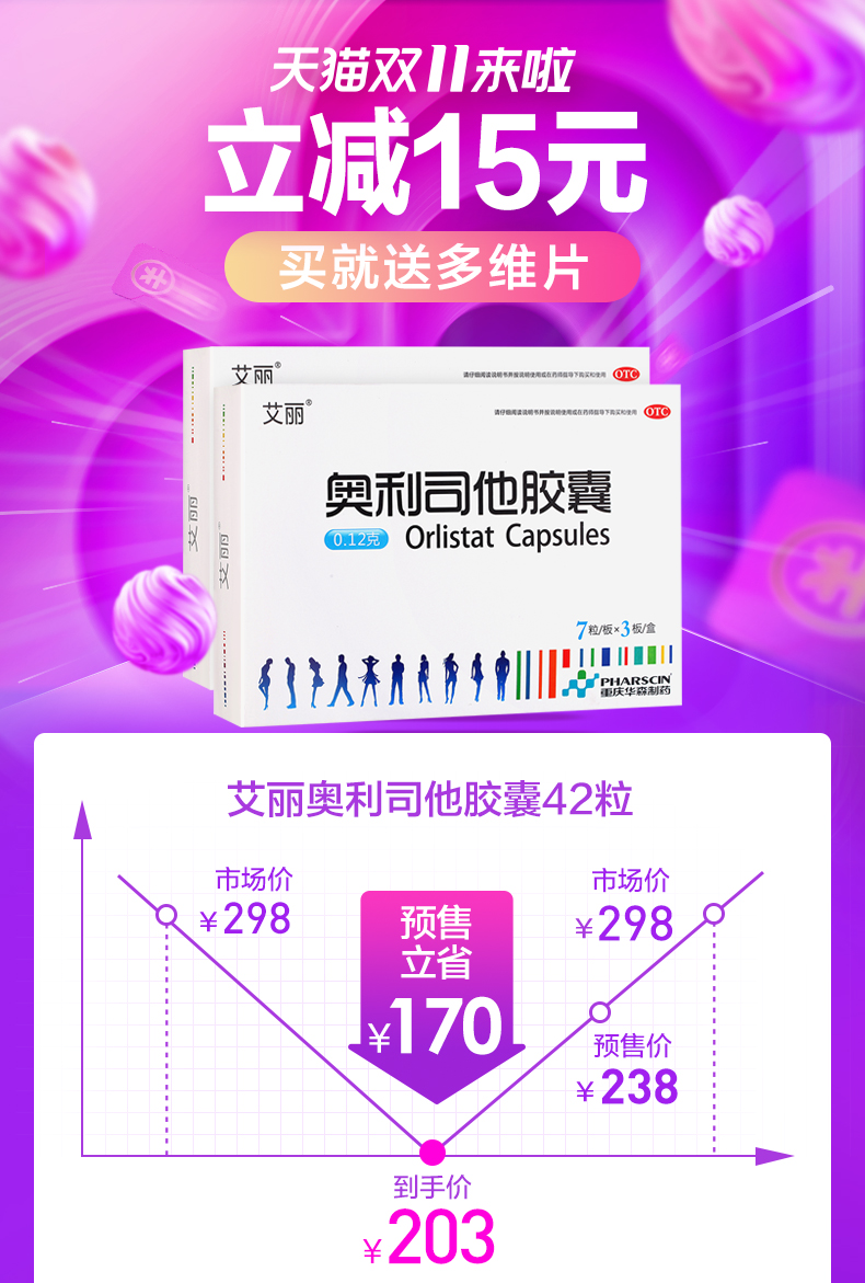 奥利司他胶囊减肥药42粒装,不腹泻,不厌食,国药准字OTC药品,吃货福音,怕胖之选!随餐服用,排油减脂,轻松享【赠运费险】