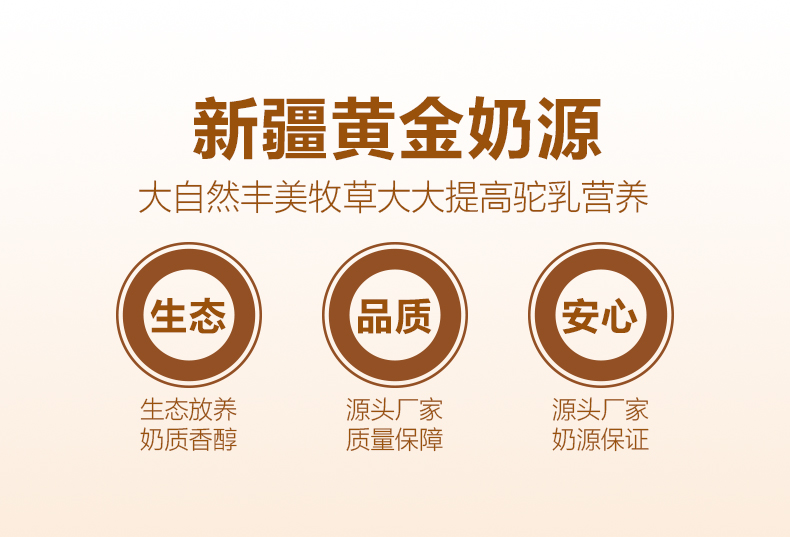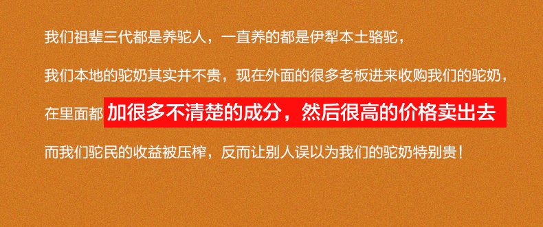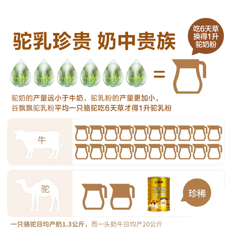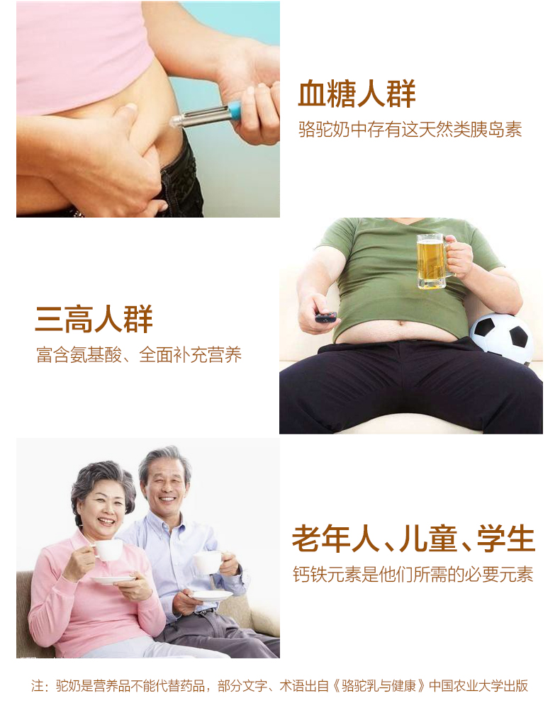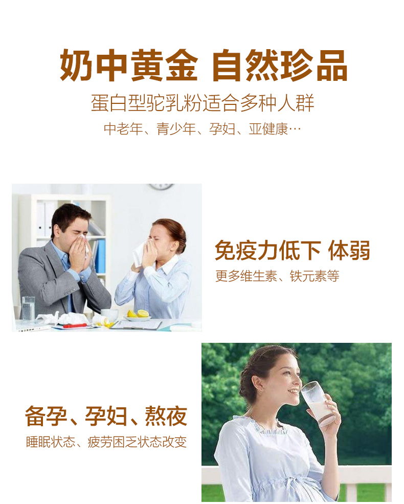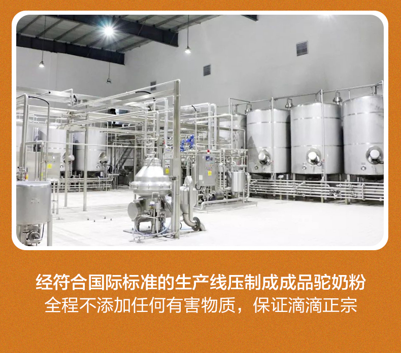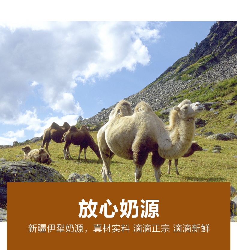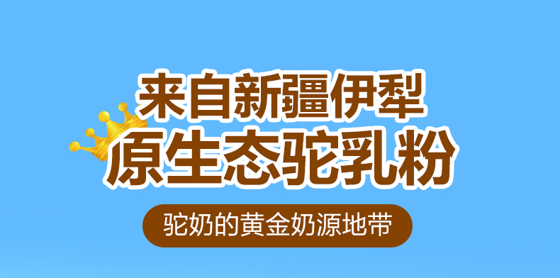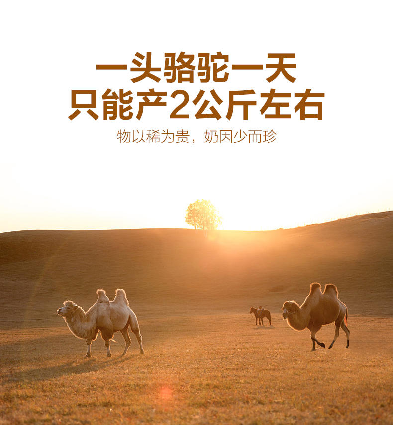 源自中国骆驼之乡,双峰骆驼产奶较少,营养价值更高,全脂驼乳粉,安全健康,有天然胰岛素钙、铁,蛋白质含量高,适合各个年龄段吸收!!