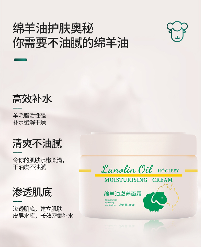 全身可用绵羊油面霜,一大罐250g,深层补水滋润保湿不油腻,绵羊油天然瑰宝,纯净羊毛脂藏着自然的“澳”秘,1滴绵羊油≈泡一次羊奶浴!四季使用,全家适用!