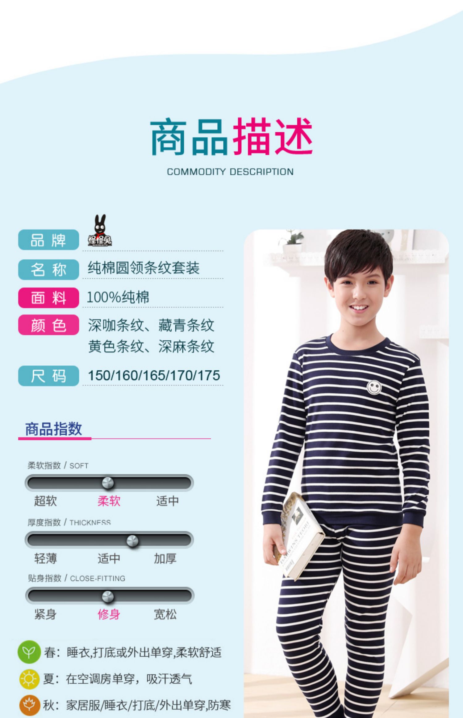 全棉男童居家内衣套装,A类品质,柔软亲肤,舒适不闷热,透气舒适,耐磨耐穿,不易起球,不易掉毛,多款可选【赠运险费】