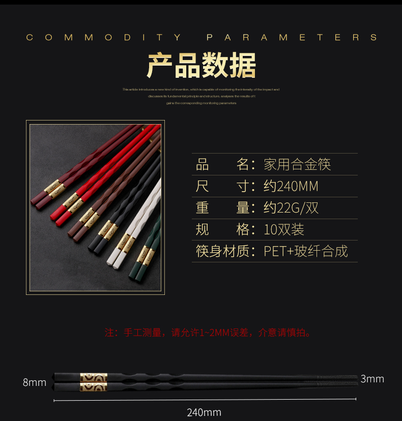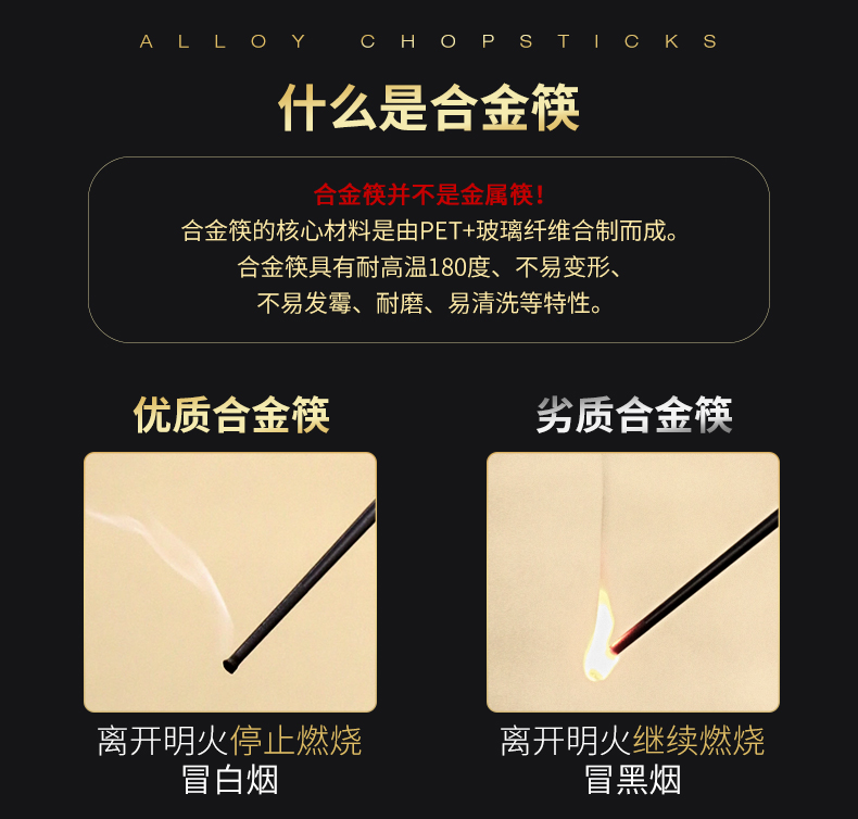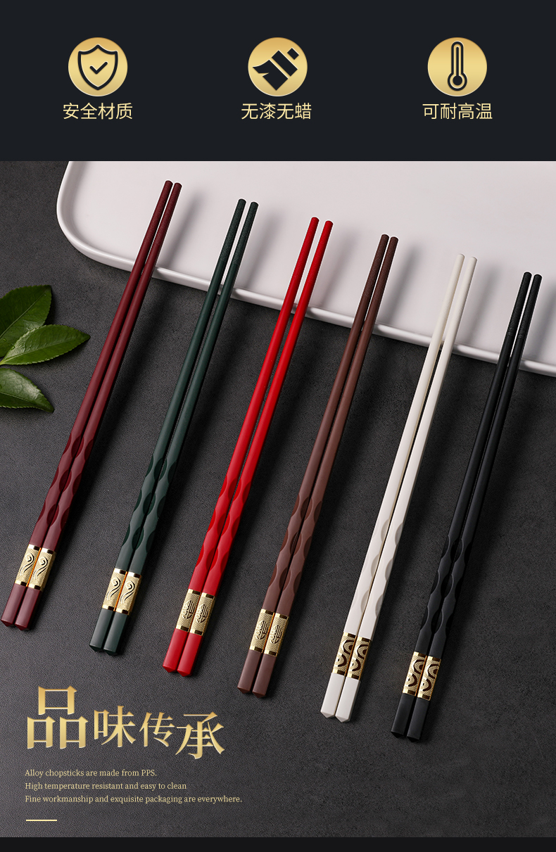 品质合金筷子,选用进口合金材料,耐高温,可消毒,易清洗,CCIC食品级检测认证,健康环保,选一双好筷子,只为家人健康!【赠运费险
