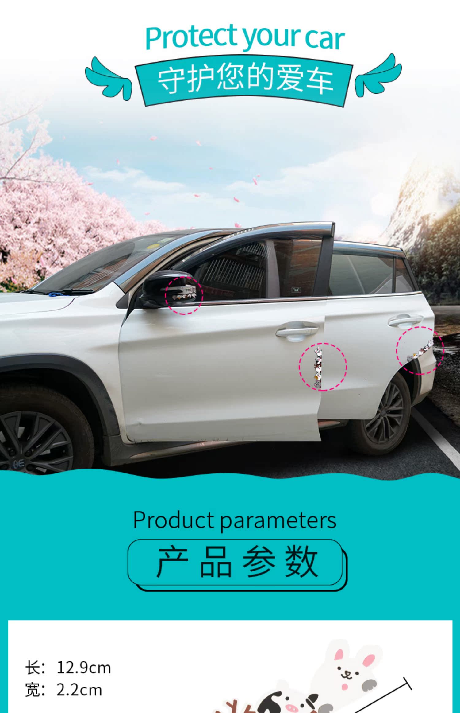 卡通车门后视镜防擦条,可爱动漫系列,加厚升级!有了防擦条,帮您解决防撞防擦问题,让车子时刻保持全新面孔!