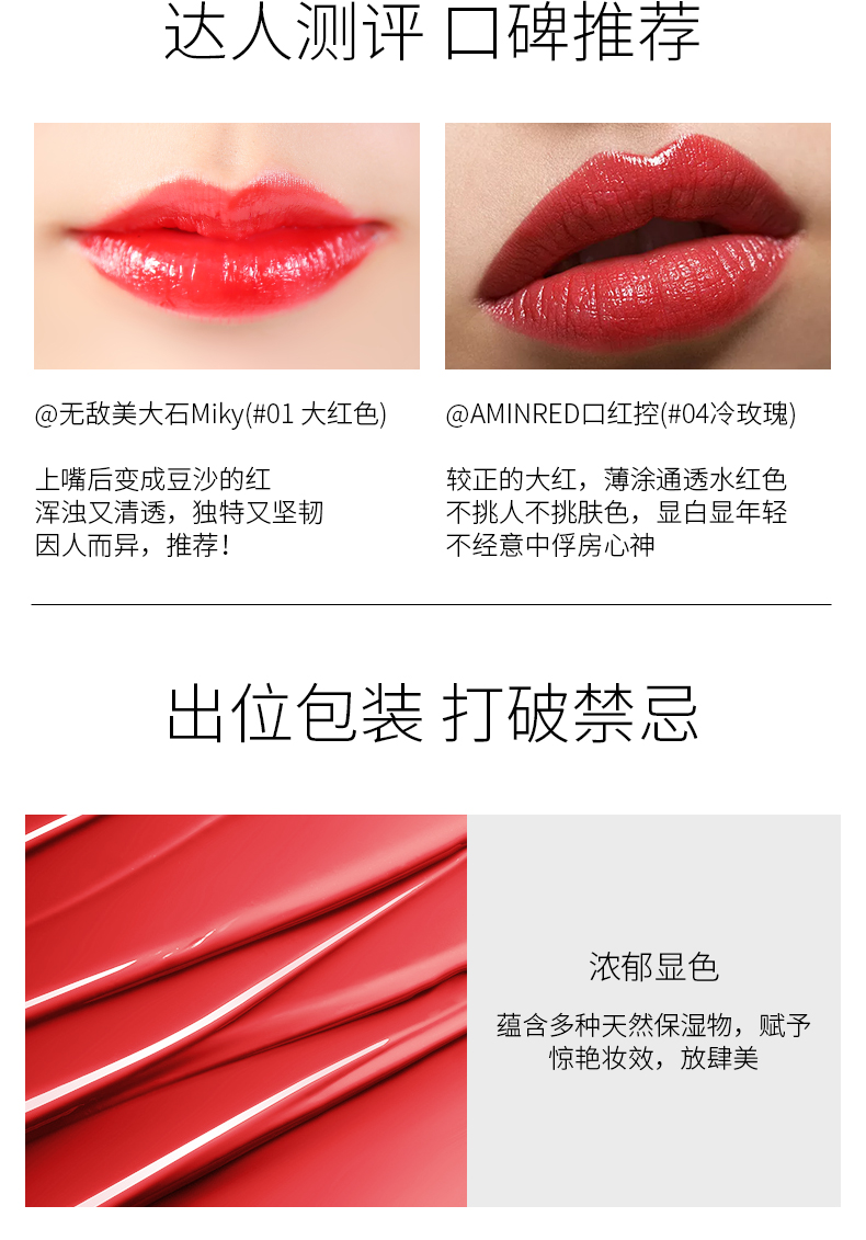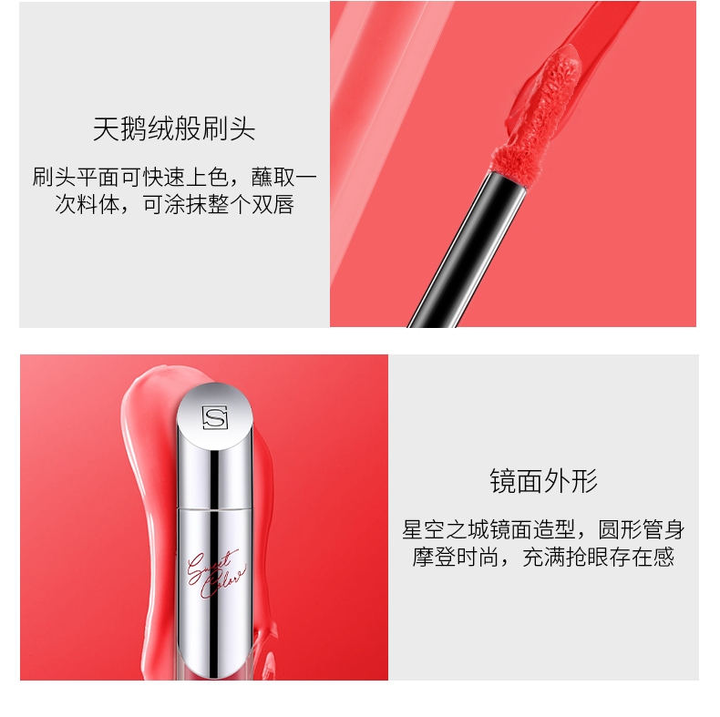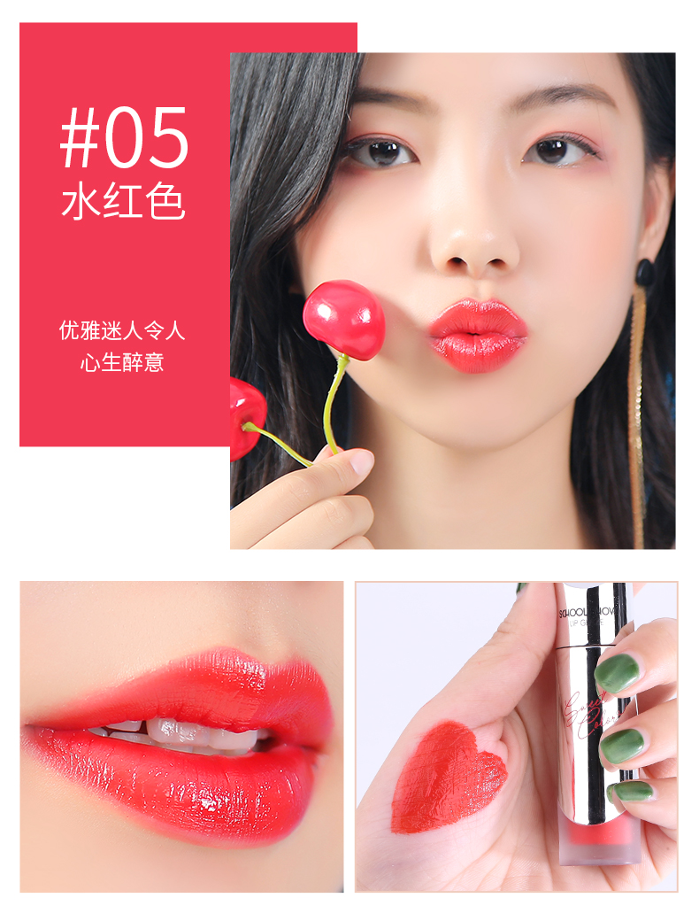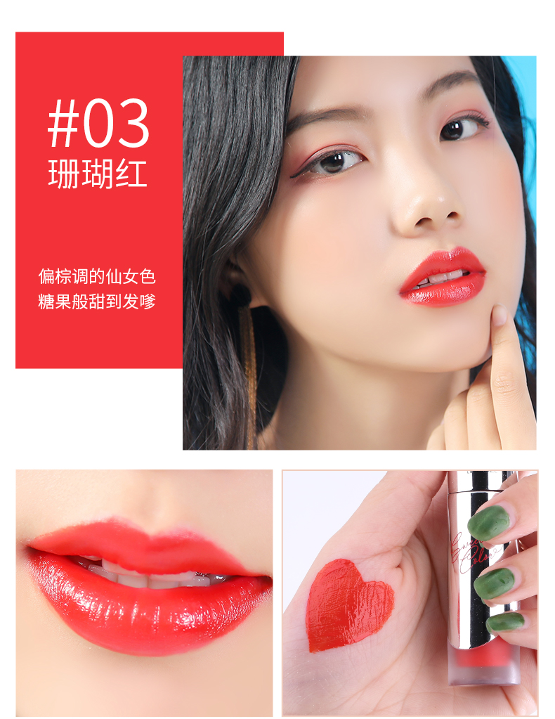 【韩国INS推荐】丝绒质地,上嘴滋润不拔干,水润无黏腻感~绒面弧度刷头,贴合人体唇部曲线,上色均匀,饱和度高。多种用途:除了当做唇釉以外,还可以用作脸部腮红,更显气质。