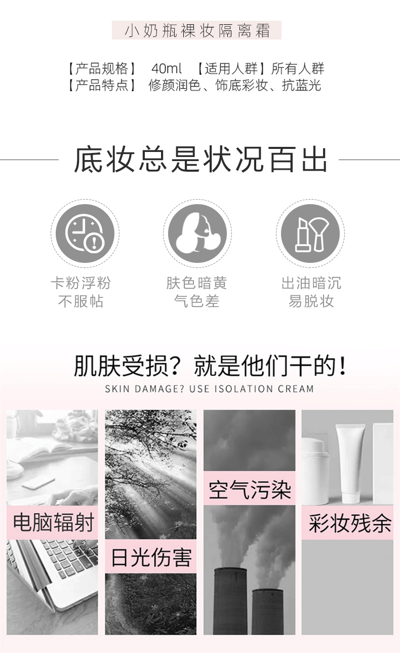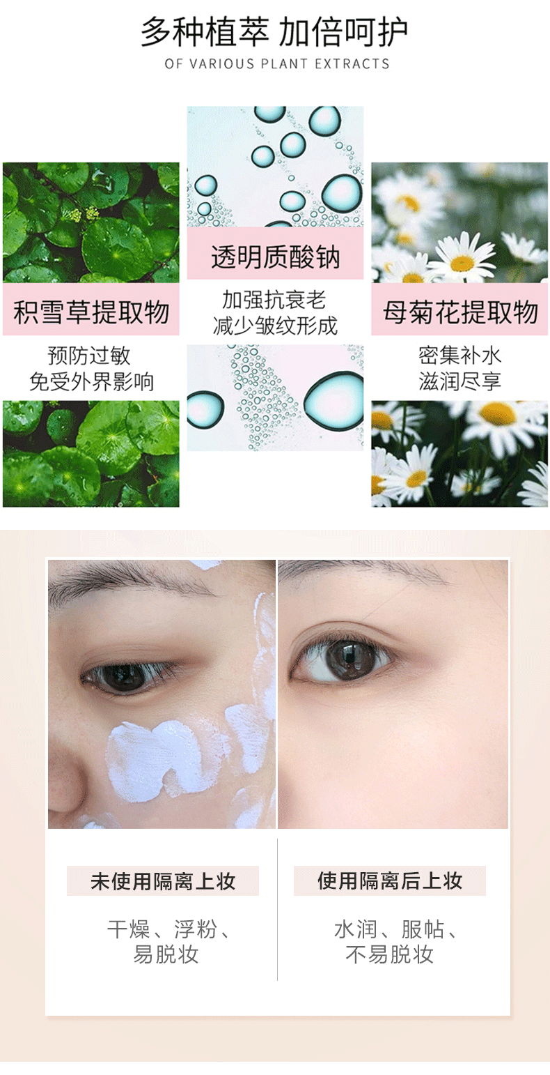 【INS推荐】天然植物配方,质地轻薄细腻,提亮肤色,水润隔离,官方正品,2款可选,不同肤质挑出适合自己的隔离霜。