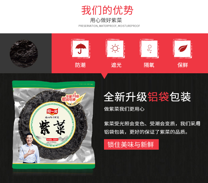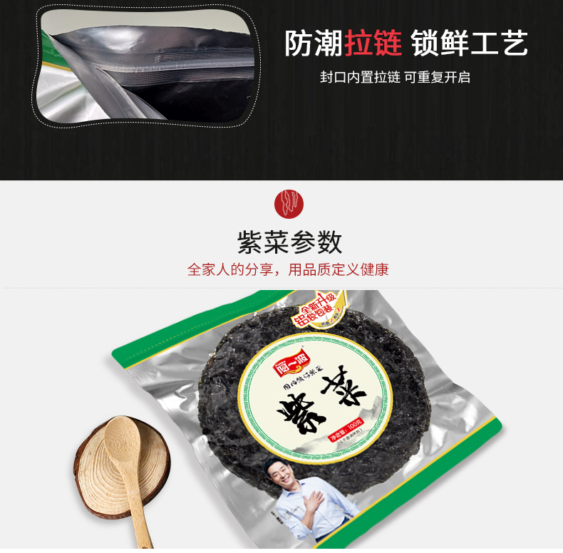 来自中国紫菜之乡霞浦,收割头水紫菜,不加色素和防腐剂,新鲜海产,干净无沙片薄,紫菜色泽油亮,幼嫩爽脆,健康营养,宝宝老人补碘补钙!【坏单包退】