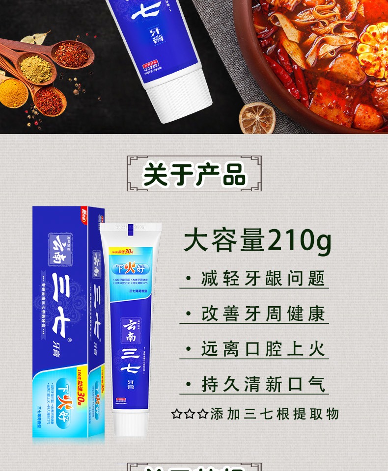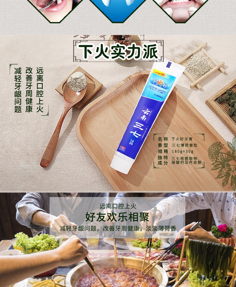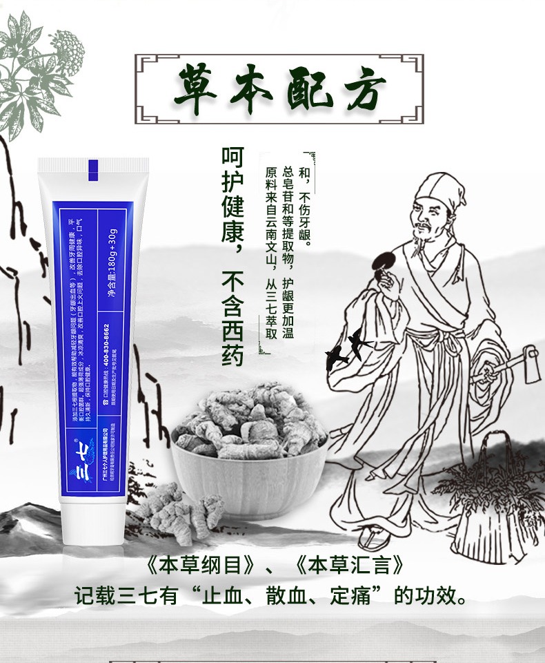 【拍三件,3支共630g,送牙刷2支,官方旗舰店】采用云南三七植物精华,有力强健牙龈,舒缓牙龈肿痛、出血等问题!每天刷一刷,让牙齿健康保持到80岁!