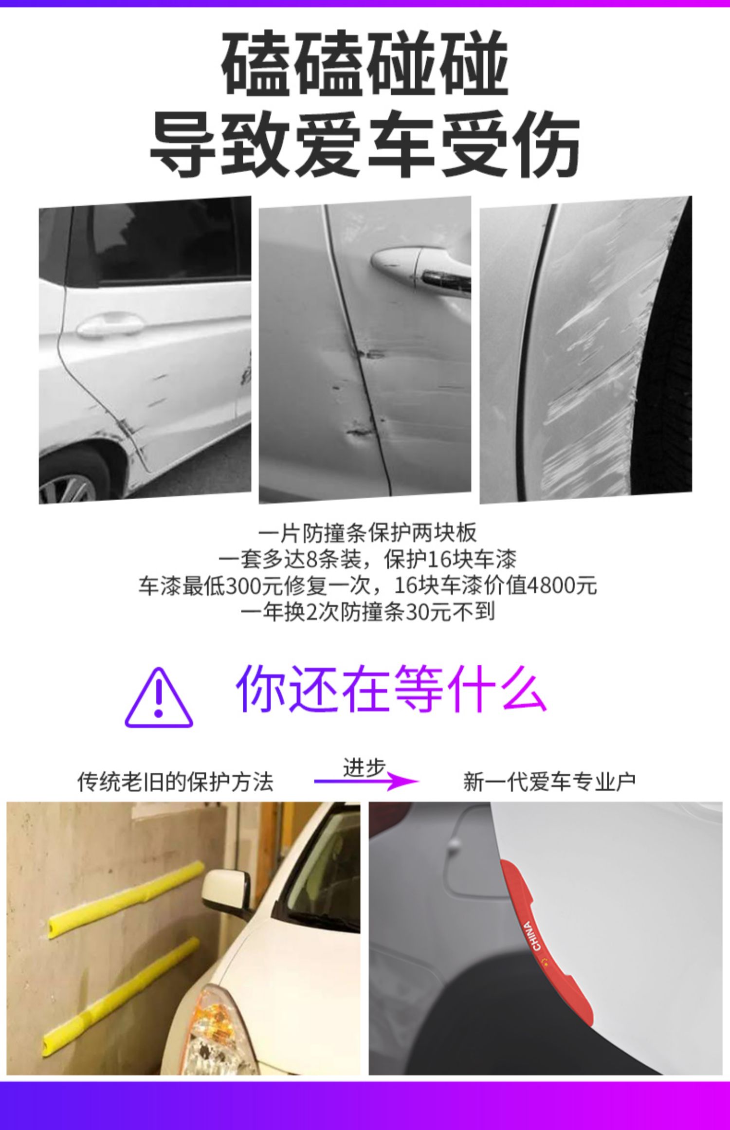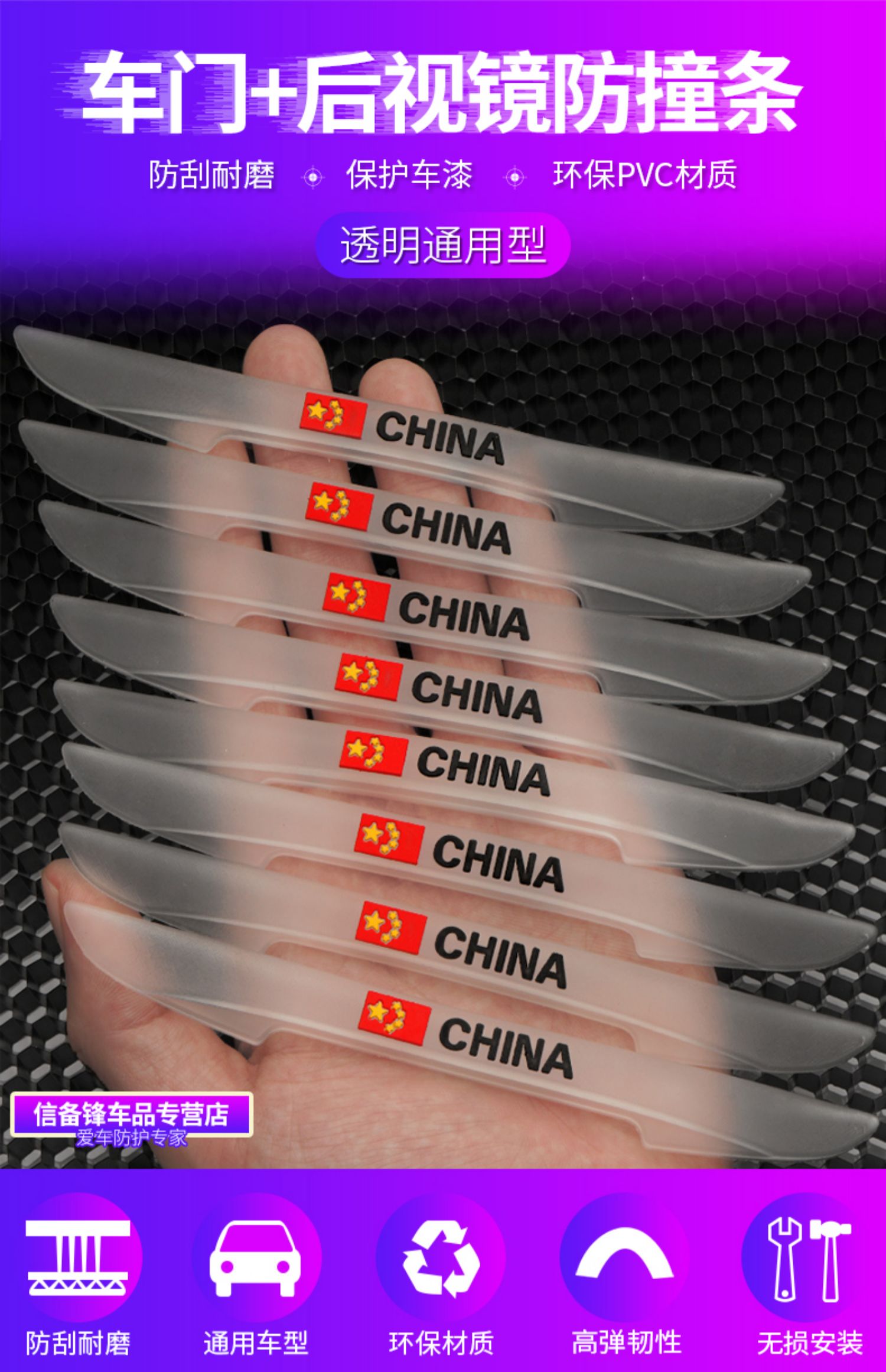 【超值6条装】加厚加长车门后视镜防撞条,汽车通用型,采用高弹性PVC材质,防刮耐磨美观实用,耐高温,不易变形变色,无痕背胶,不留痕不伤漆,多款可选,有车一族必备!