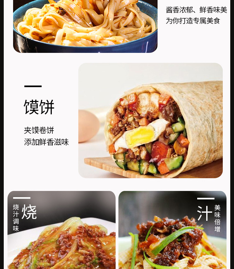 精挑细选,传统配方,风干晾晒,匠心调制,天然香辛料,食而不腻。大酱风范;拌饭,煮面,夹馍饭桌上的绝配,一种让你吃了忘不了的味道;世间唯美食与爱不可或缺,还在等什么,快来抢购【赠运费险】