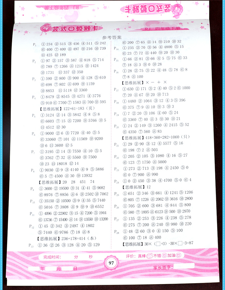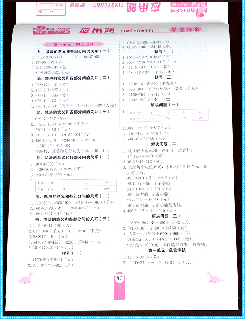 人教版四年级下册小学语文应用++竖式+口算,课程同步,题型丰富,一课一练,自我检测,巩固所学知识,课后十分钟,轻松做学霸!!
