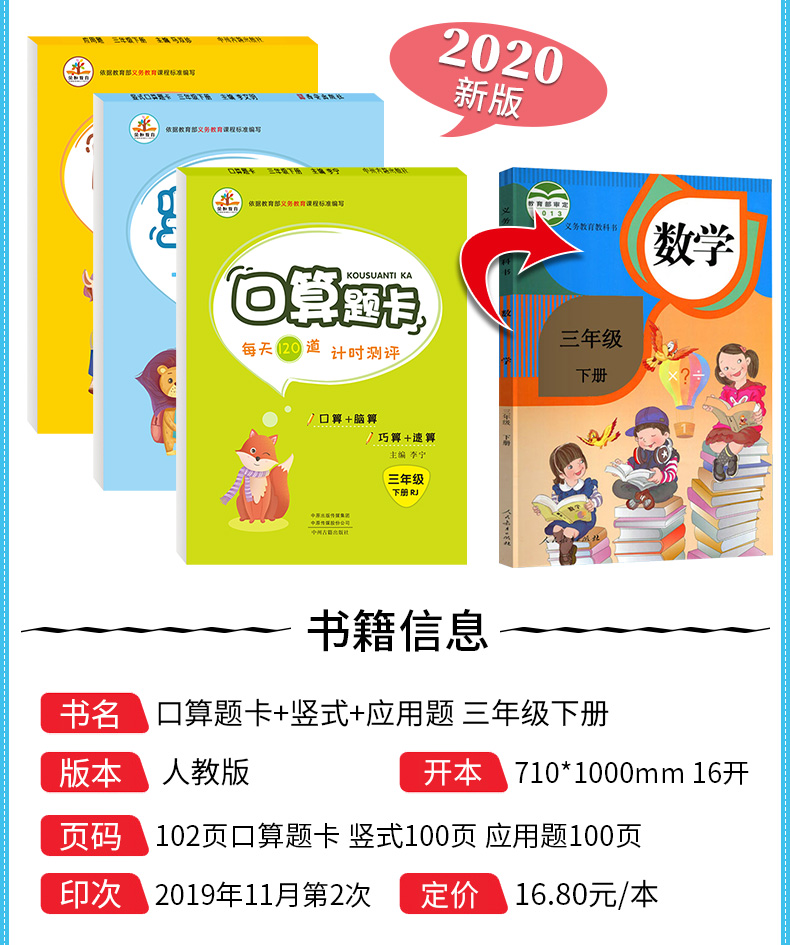 人教版三年级下册小学语文应用++竖式+口算,课程同步,题型丰富,一课一练,自我检测,巩固所学知识,课后十分钟,轻松做学霸!!
