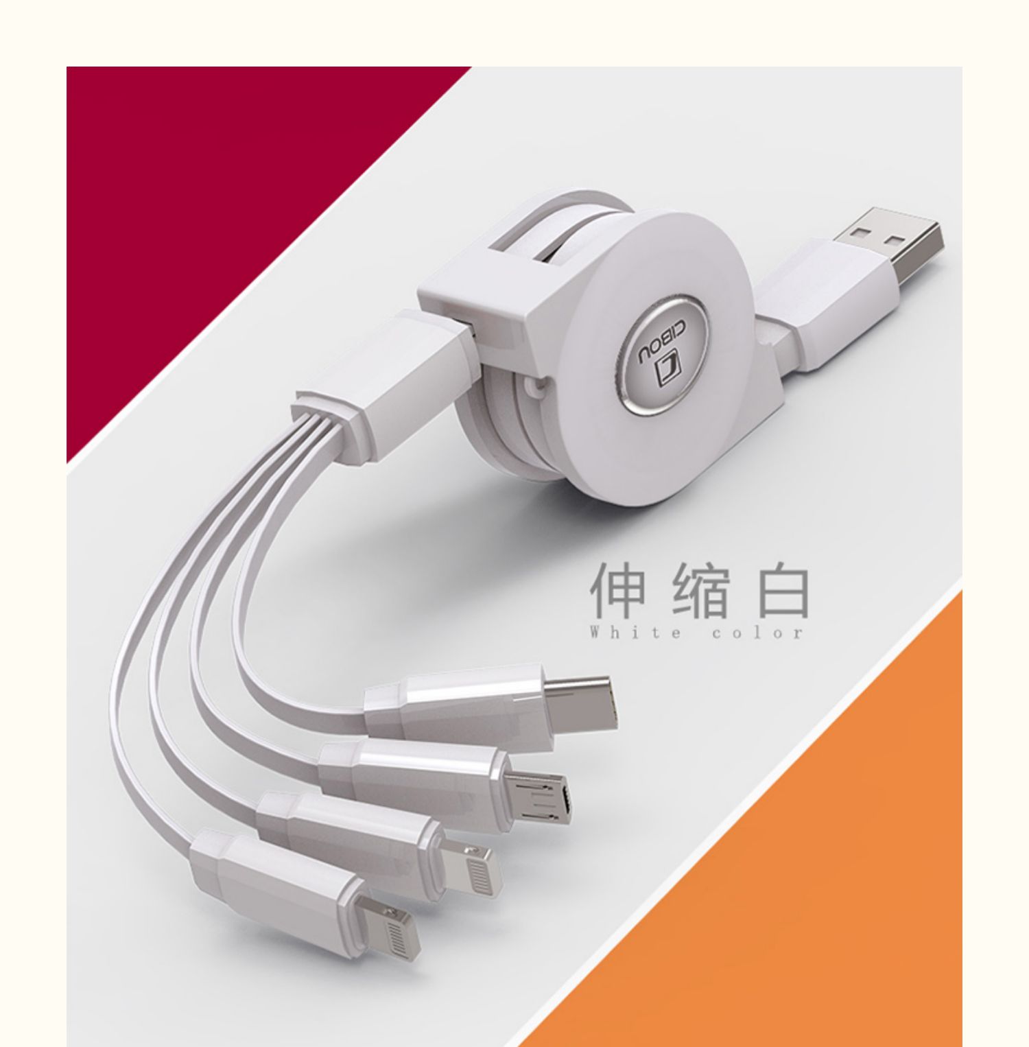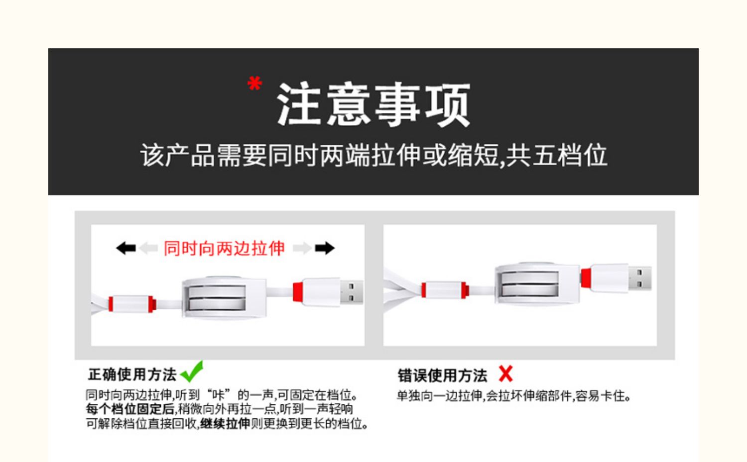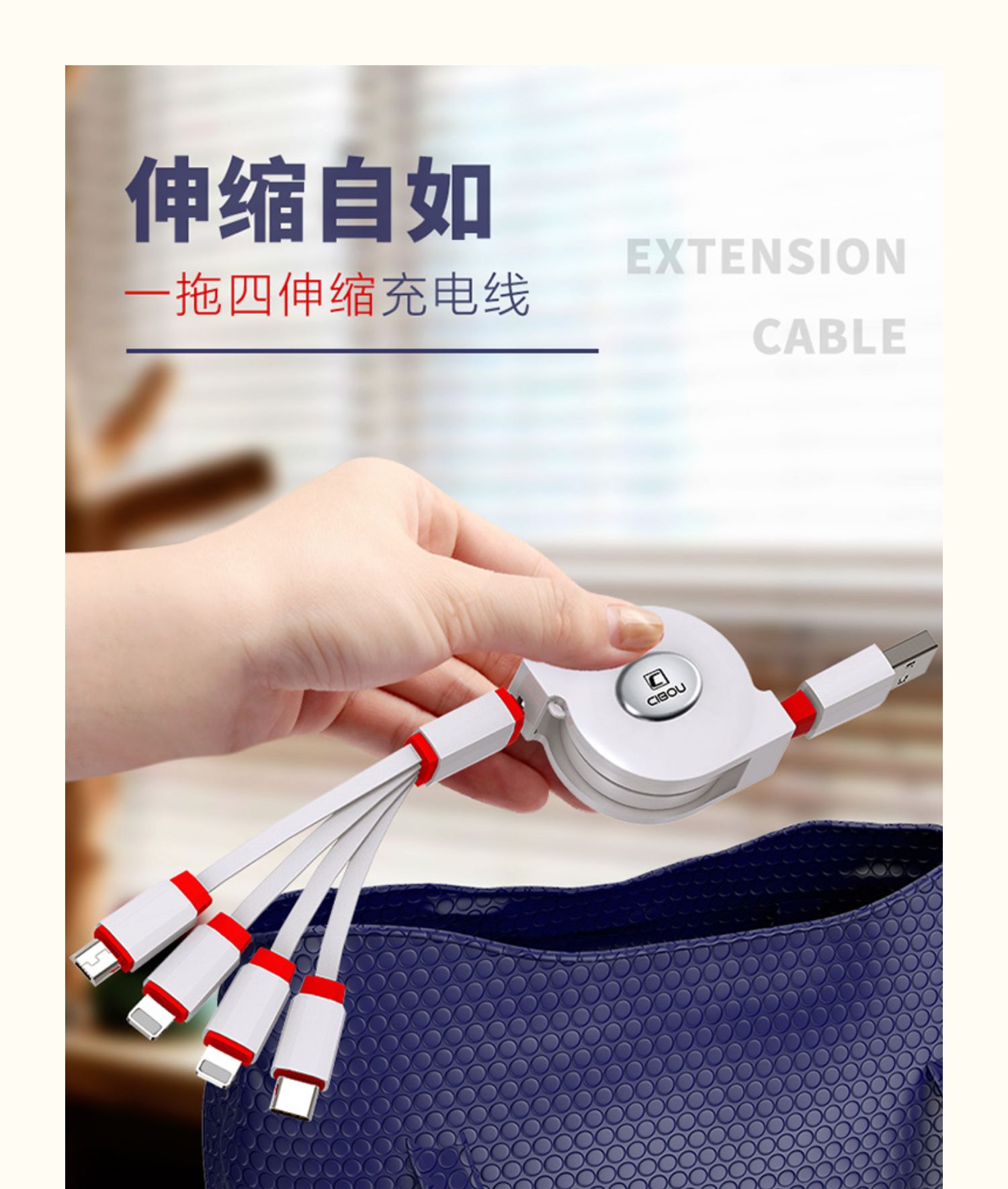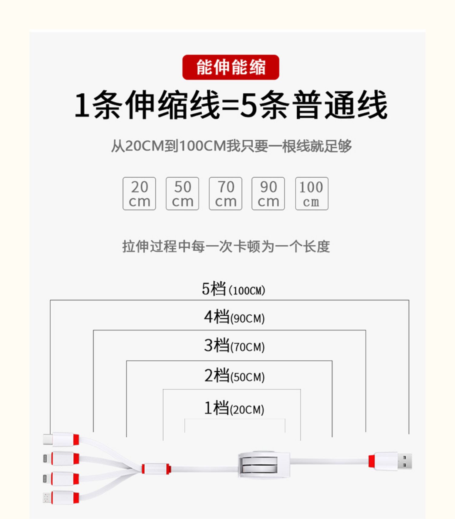 【便携伸缩款】3A加粗版线芯加粗【超长1M】全铜芯设计,充电提速40%,质保2年,优质合金外壳,多头充电线,解决不同接口的需求!超级方便实用~