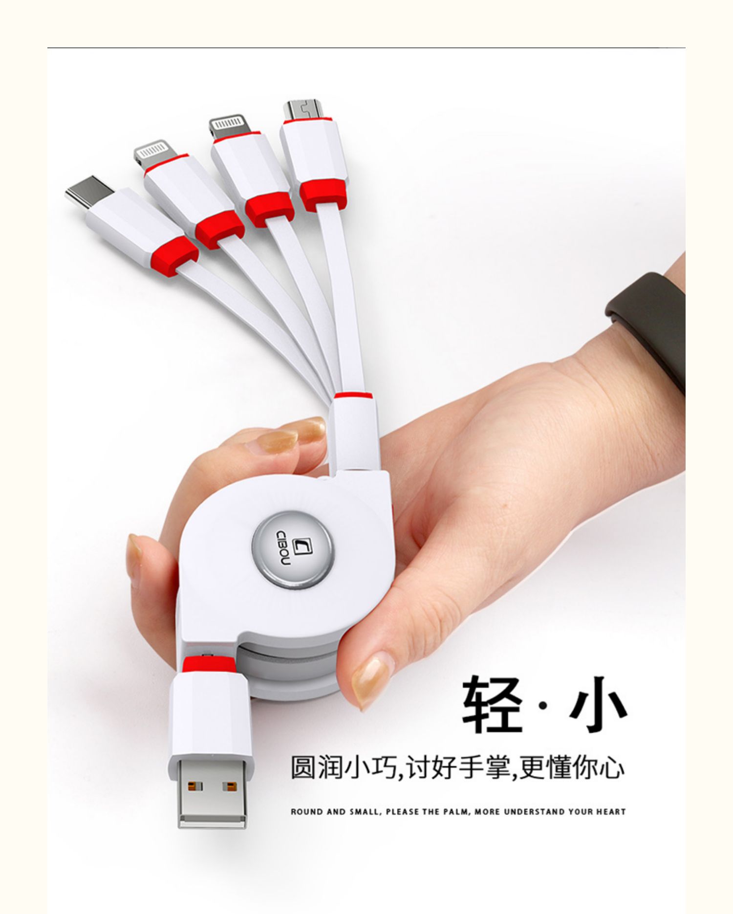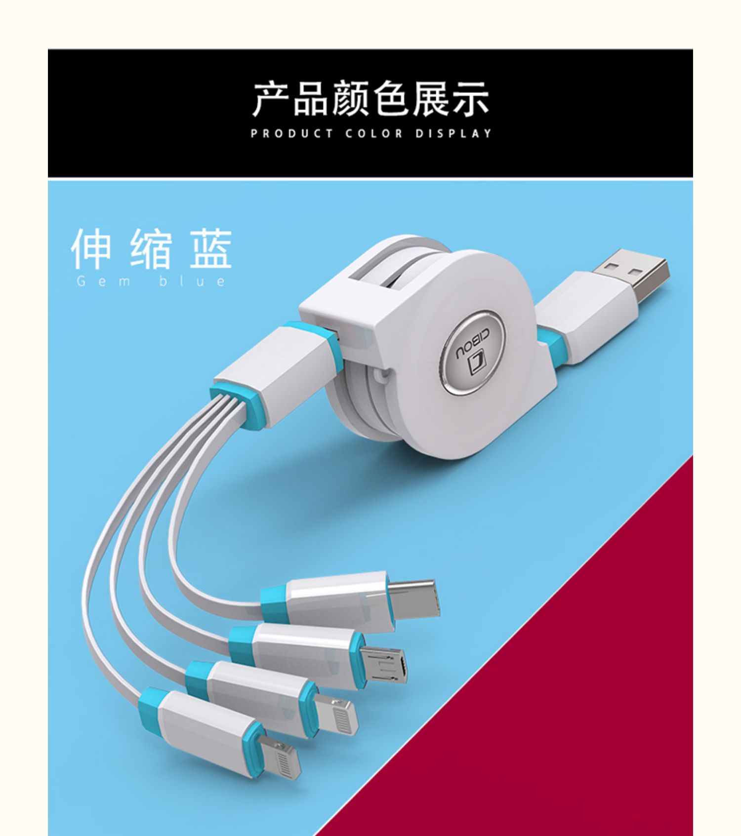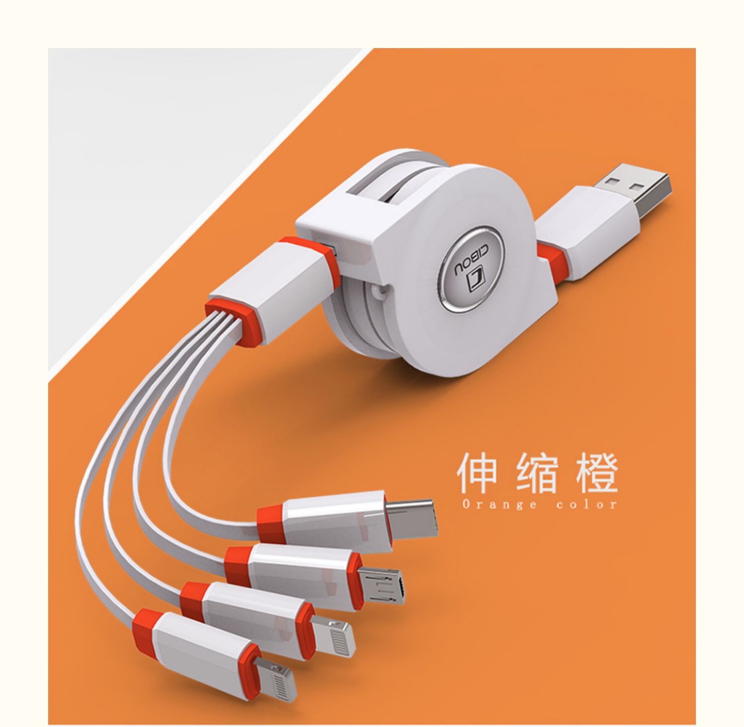 【便携伸缩款】3A加粗版线芯加粗【超长1M】全铜芯设计,充电提速40%,质保2年,优质合金外壳,多头充电线,解决不同接口的需求!超级方便实用~