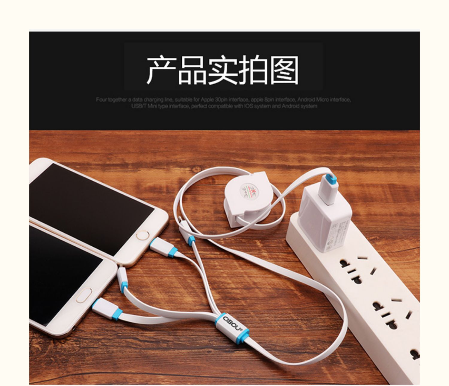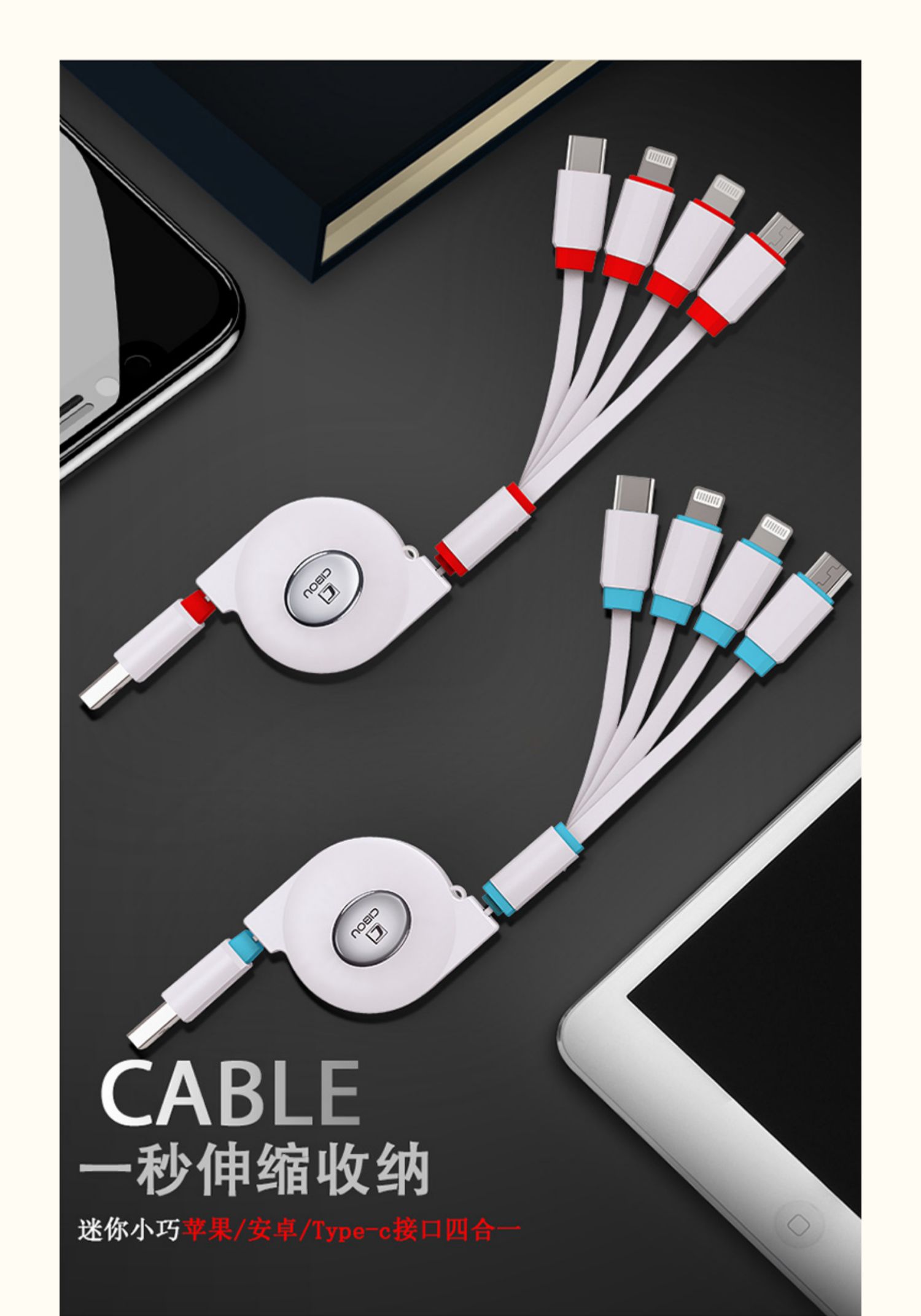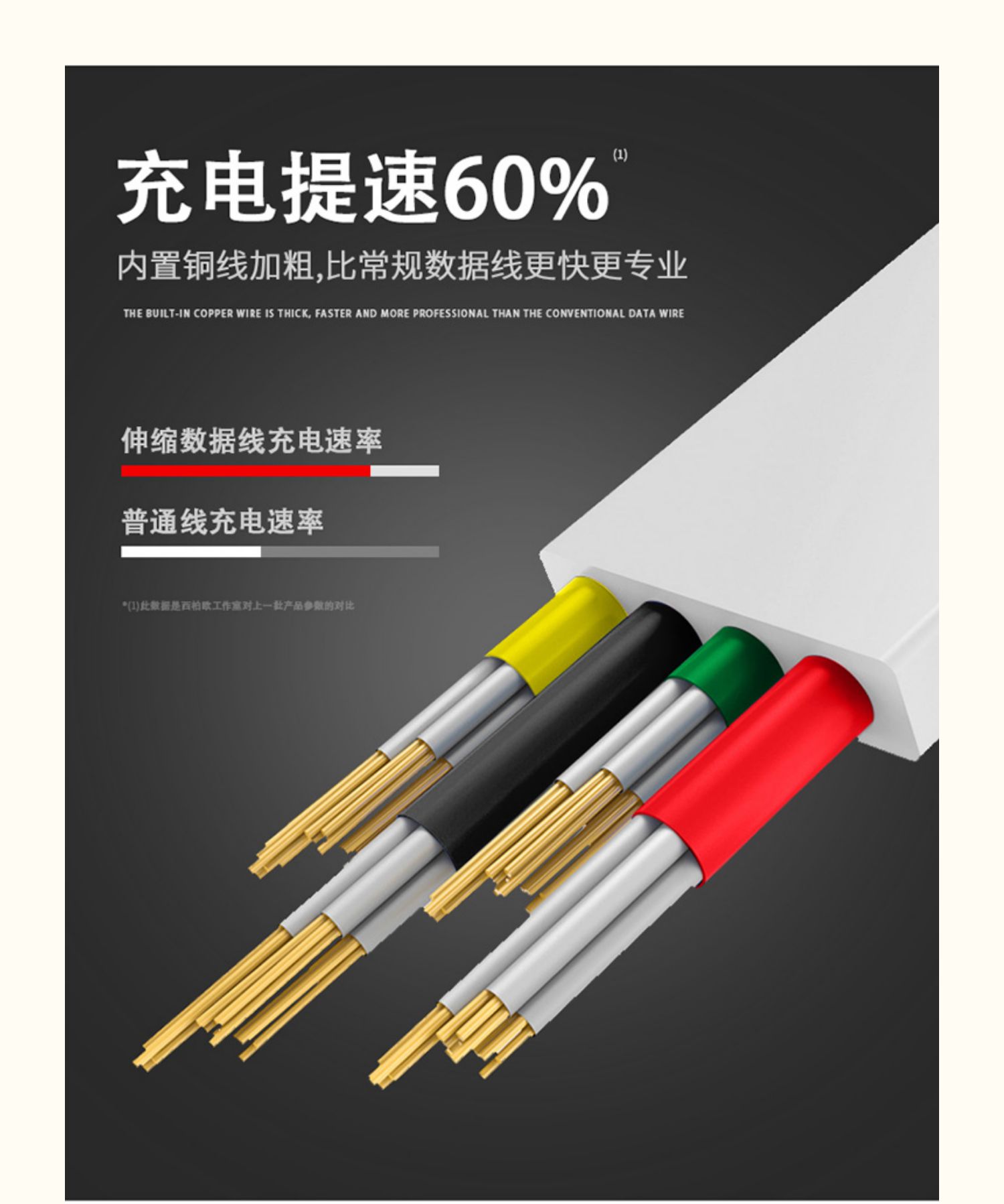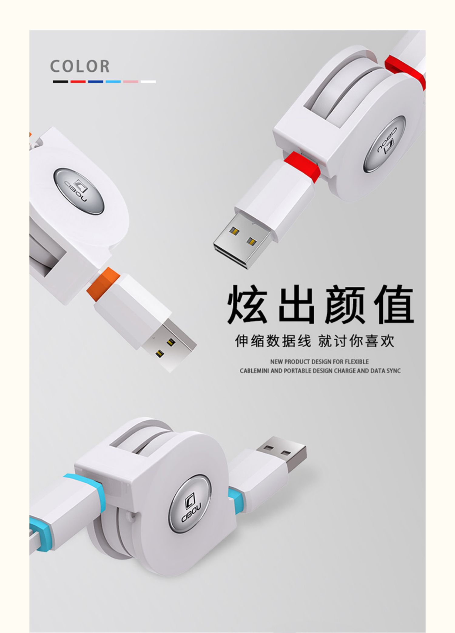 【便携伸缩款】3A加粗版线芯加粗【超长1M】全铜芯设计,充电提速40%,质保2年,优质合金外壳,多头充电线,解决不同接口的需求!超级方便实用~