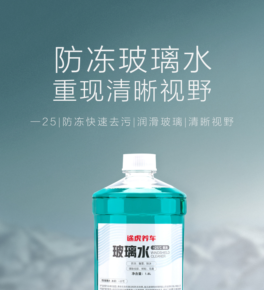 防冻途虎汽车防冻玻璃水,车用冬季雨刷精雨刮水-10-25度,清洗液四季通用-25°防冻快速去污,润滑玻璃、清晰视野。