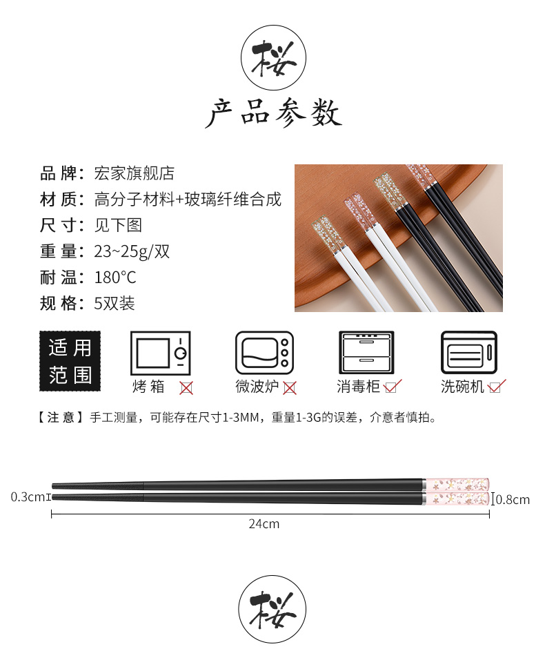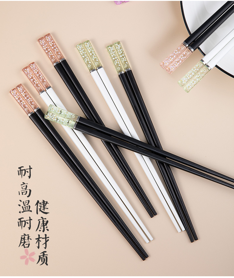 【10双装】宏家防烫防滑日式家用筷子,采用高档合金材质,磨砂防滑工艺筷尖,通过食品接触材料检测认证,耐高温消毒,长期使用不弯曲,无漆无蜡不发霉,守护家人健康从一双好筷子开始!【多款多色可选】