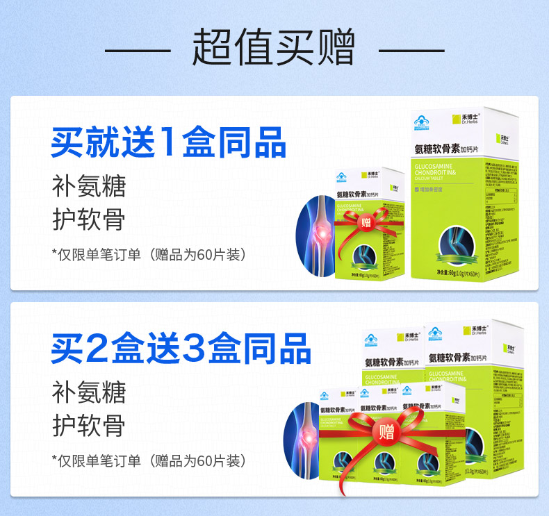 【全国包邮】【赠运费险】过年过节送啥礼?当然送健康!禾博士氨糖软骨素加钙,脑白金公司大牌+蓝帽子认证!钙+硫酸软骨素+氨糖,3效合1!让爸妈骨骼健康,身体倍棒!
