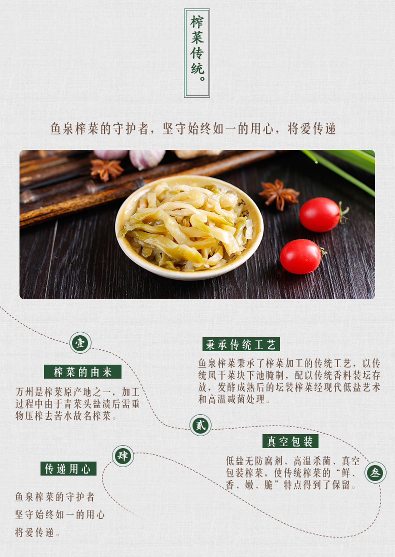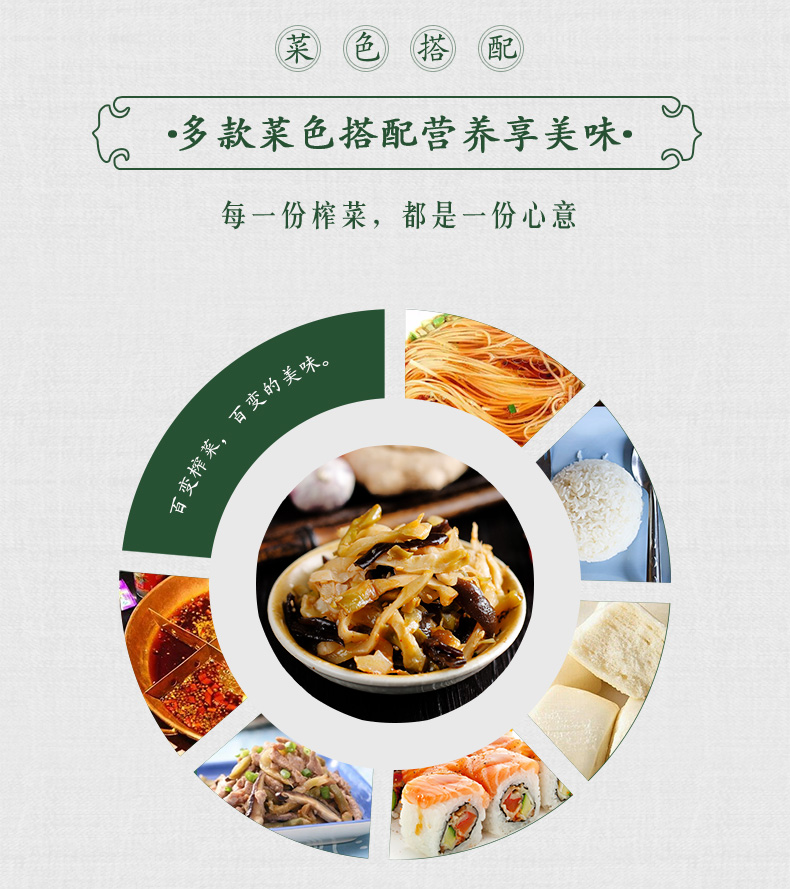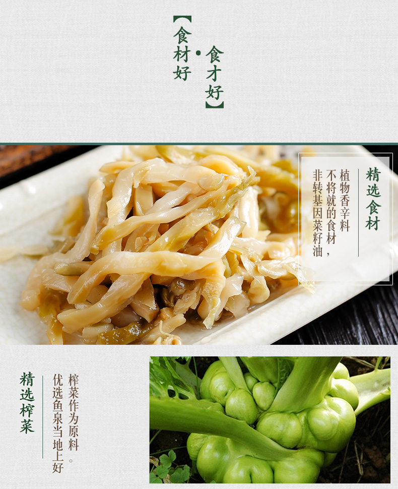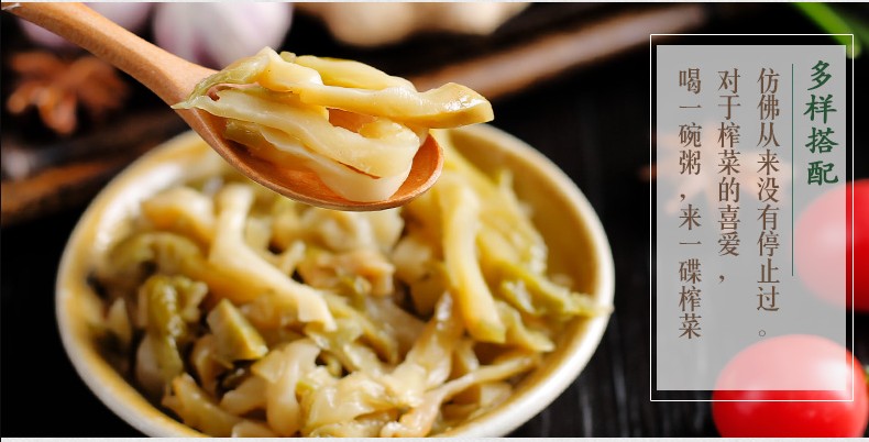 【推荐理由】中国好味道,优选榨菜,食材不将就,丝丝嫩爽,口感清脆,鲜香脆嫩,美妙难挡,怎么吃都好吃~健康美味又实惠!