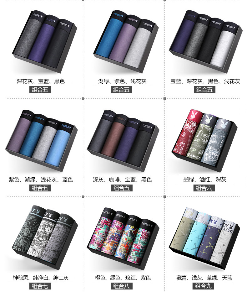 花花公子男士四角裤内裤,轻柔舒适,透气亲肤,3D剪裁不勒不紧绷,穿着超舒服,多款可选!
