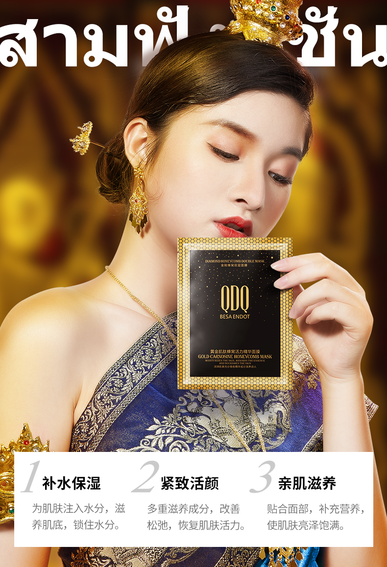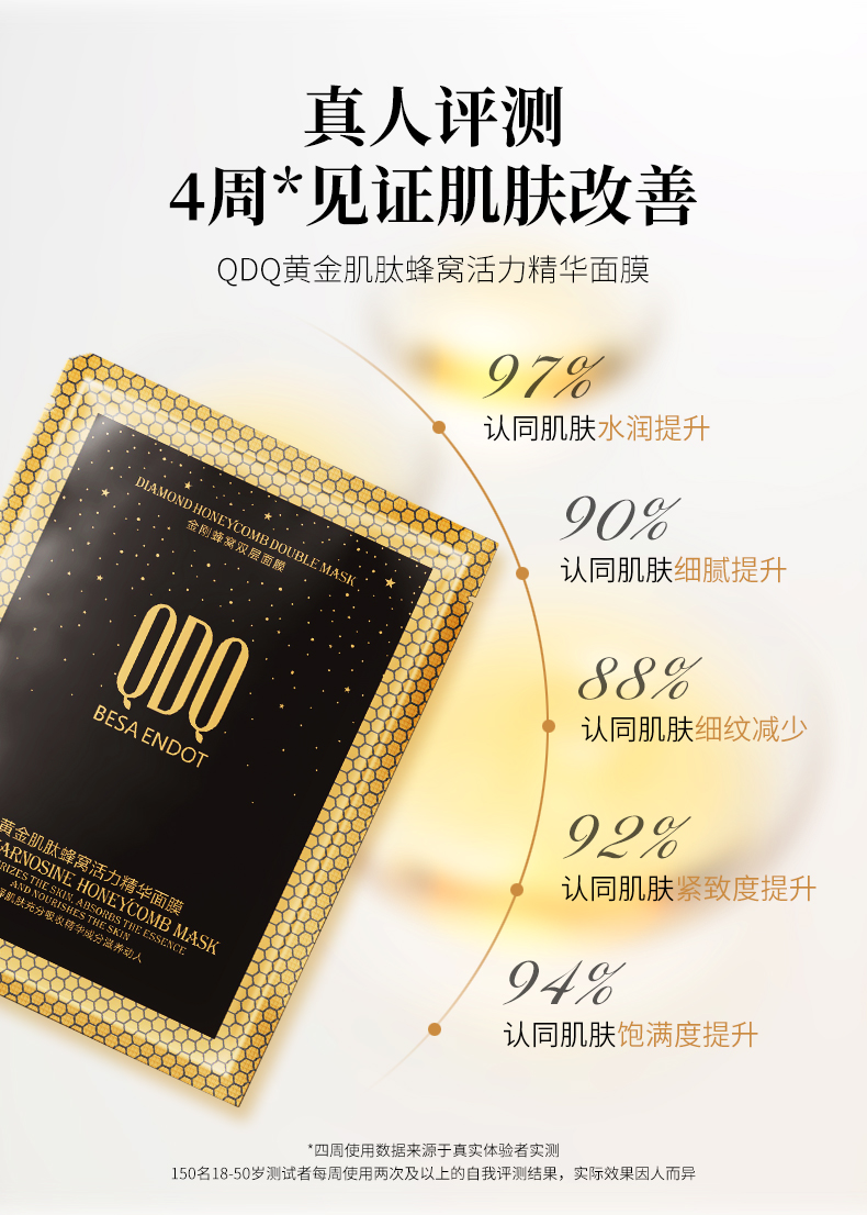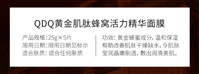 拍2件!QDQ黄金肌肽蜂窝面膜10片