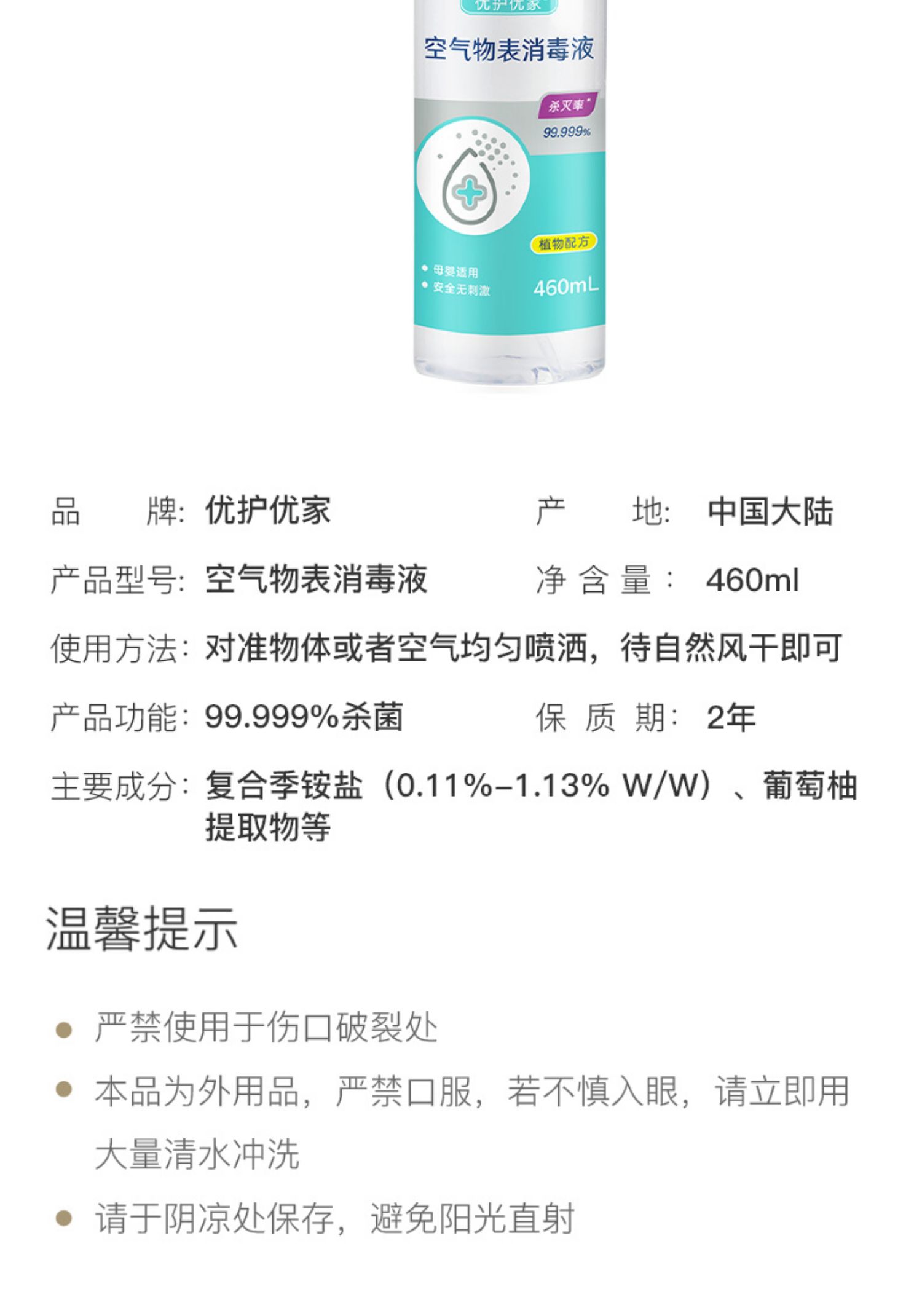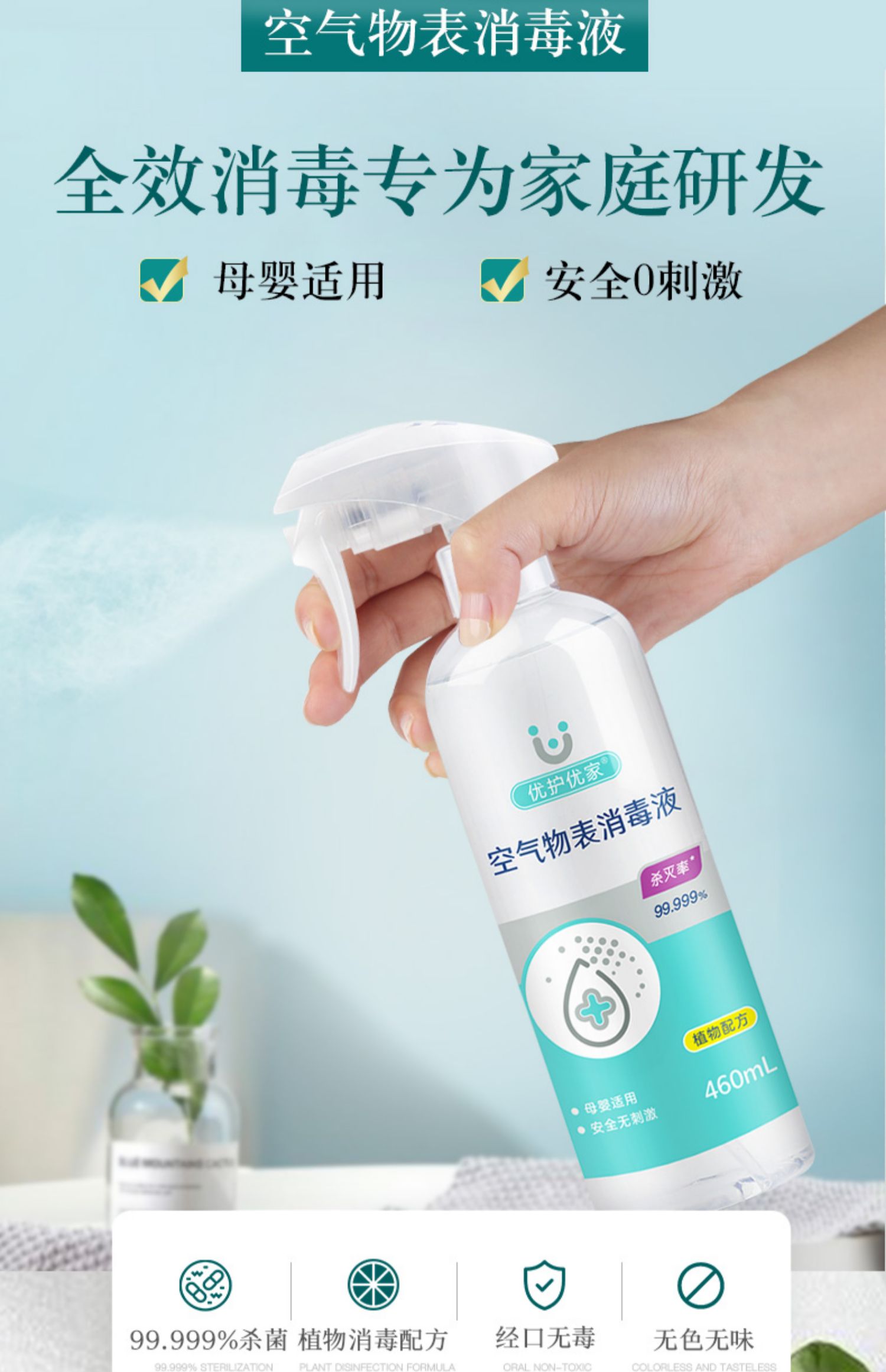 【第二件半价】460ml空气消毒液,天然植物成分,杀菌率99.99%,预防交叉感染,免洗免擦,无色无味,家具消毒,一喷搞定,入口级,孕婴可用,值得购买!【赠运费险】