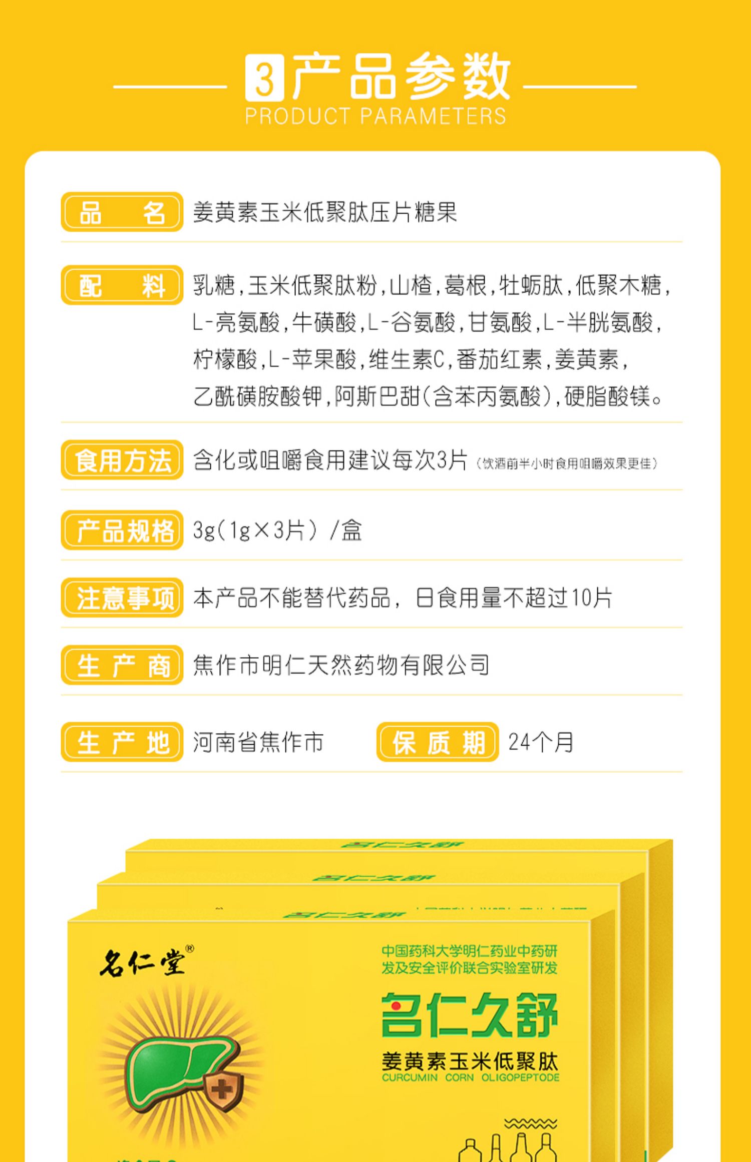 名仁堂姜黄神器革命快速解酒丸3粒*3盒