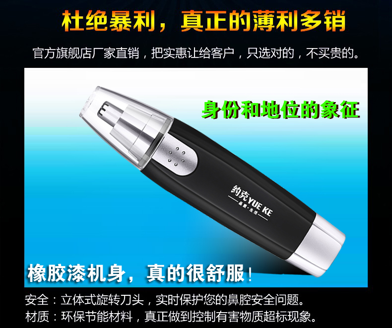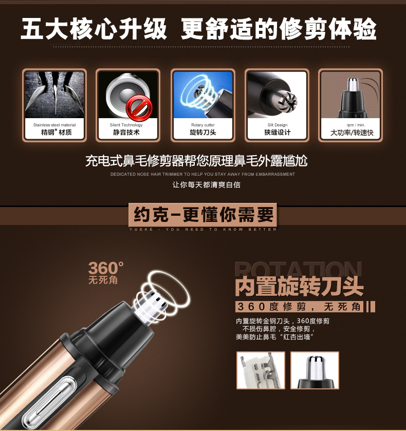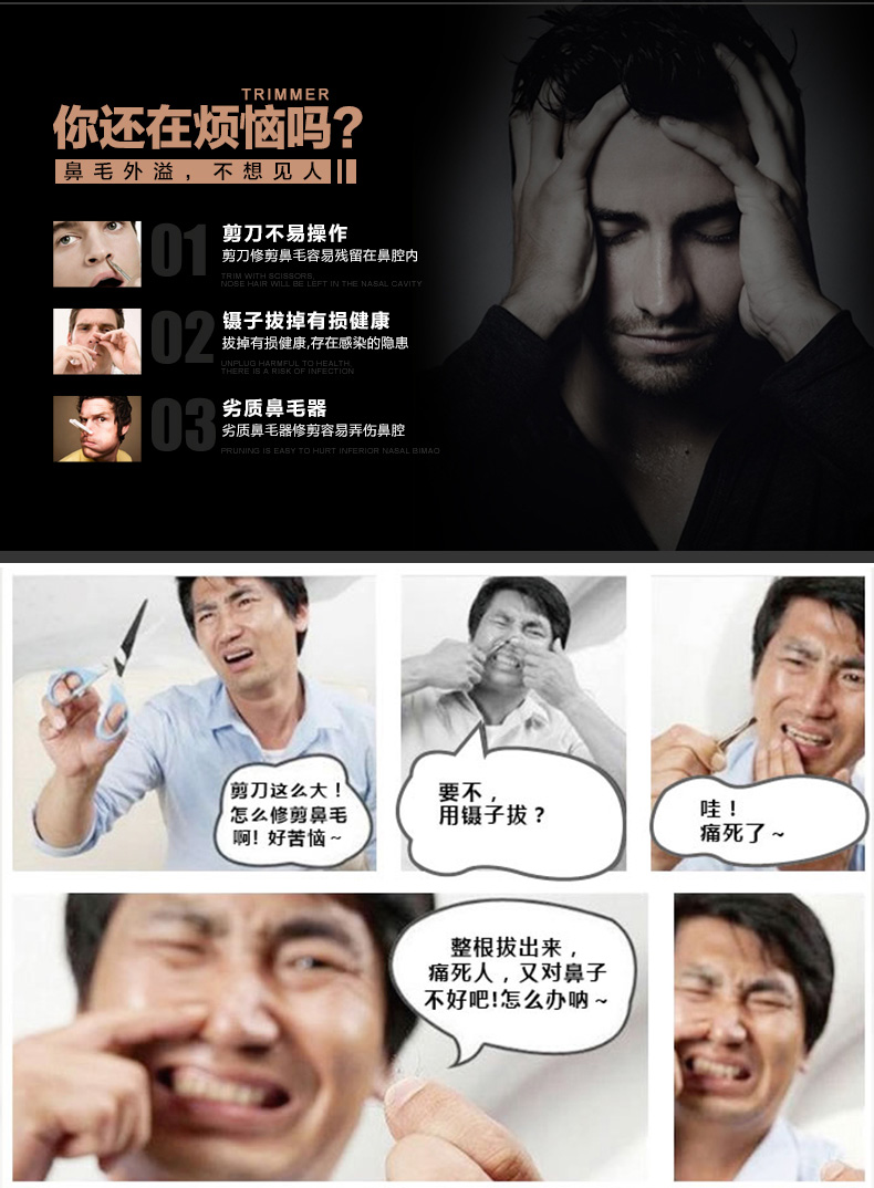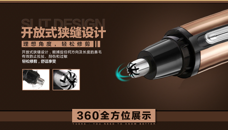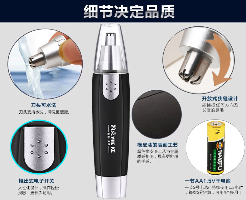 杜绝鼻毛外露难堪,立体旋转刀头,360°全面捕捉,轻松修剪鼻毛,不伤鼻腔!刀头可直接水洗,一机塑型,经久耐用。透气保护盖,防发霉异味~