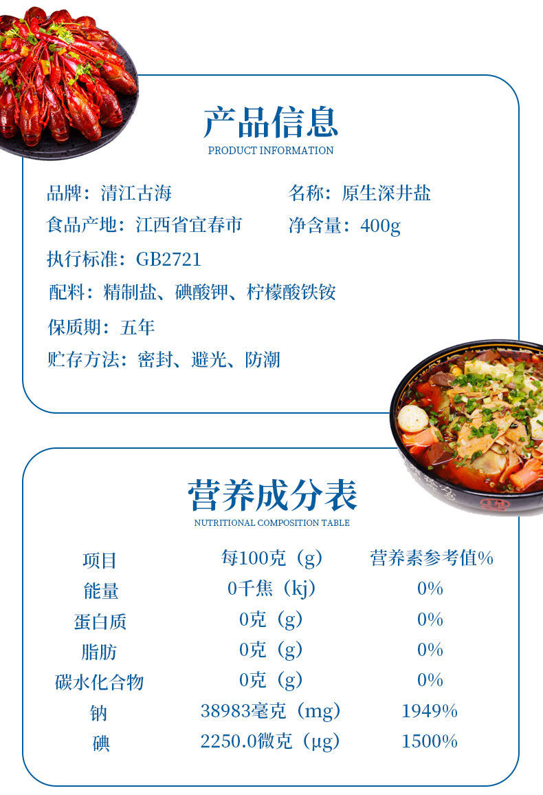 纯正深井盐食用碘盐400g*6袋