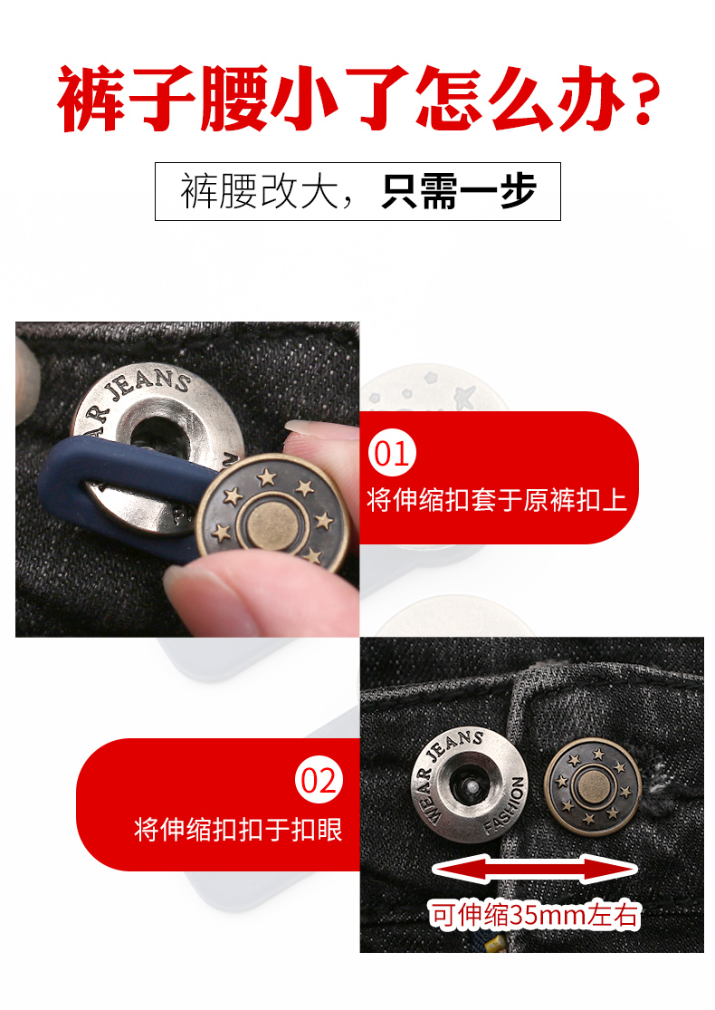 收腰改裤腰可拆卸钮扣可调节牛仔裤