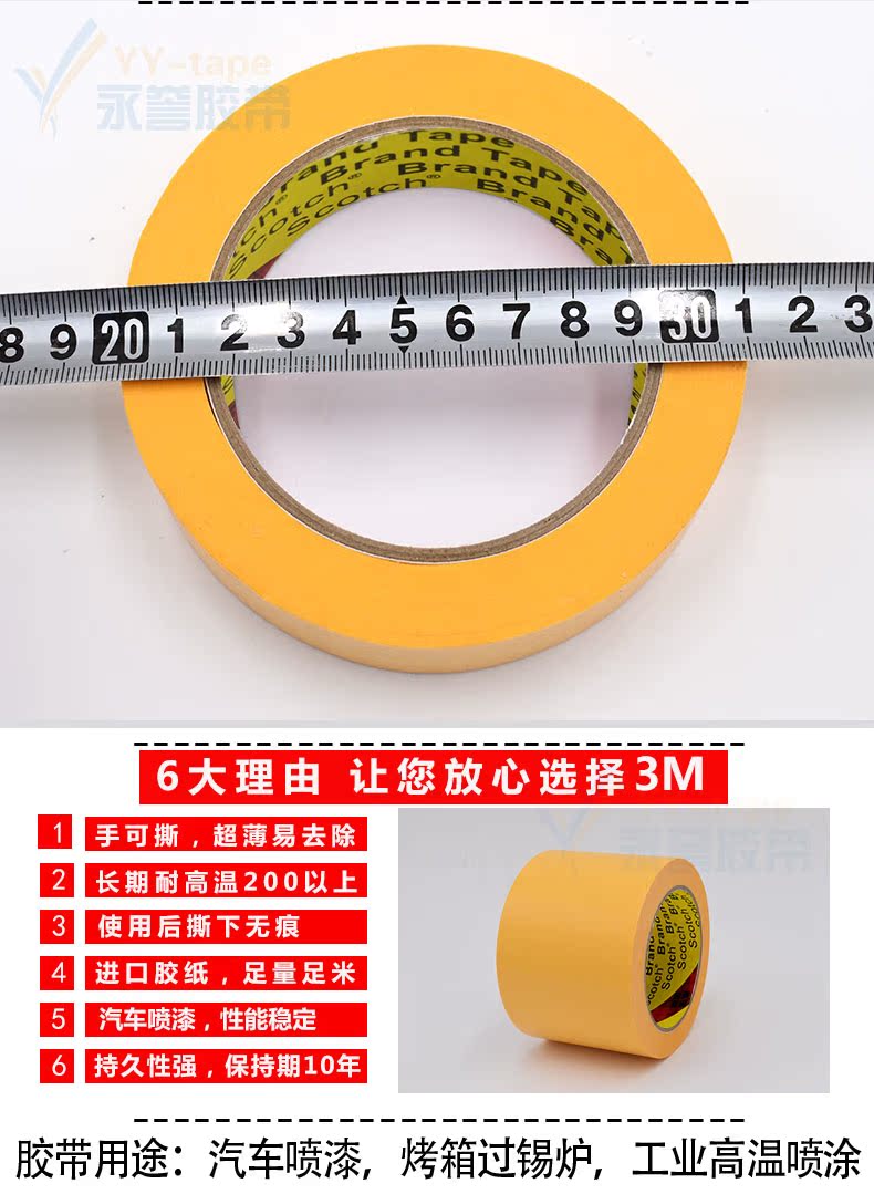 3M244美纹纸胶带,原装正品,汽车喷涂遮蔽无痕耐高温黄色和纸胶带,烤炉波峰焊模型遮盖船舶分色喷漆保护美纹纸,喷漆耐200度撕下无痕稳定性强!
