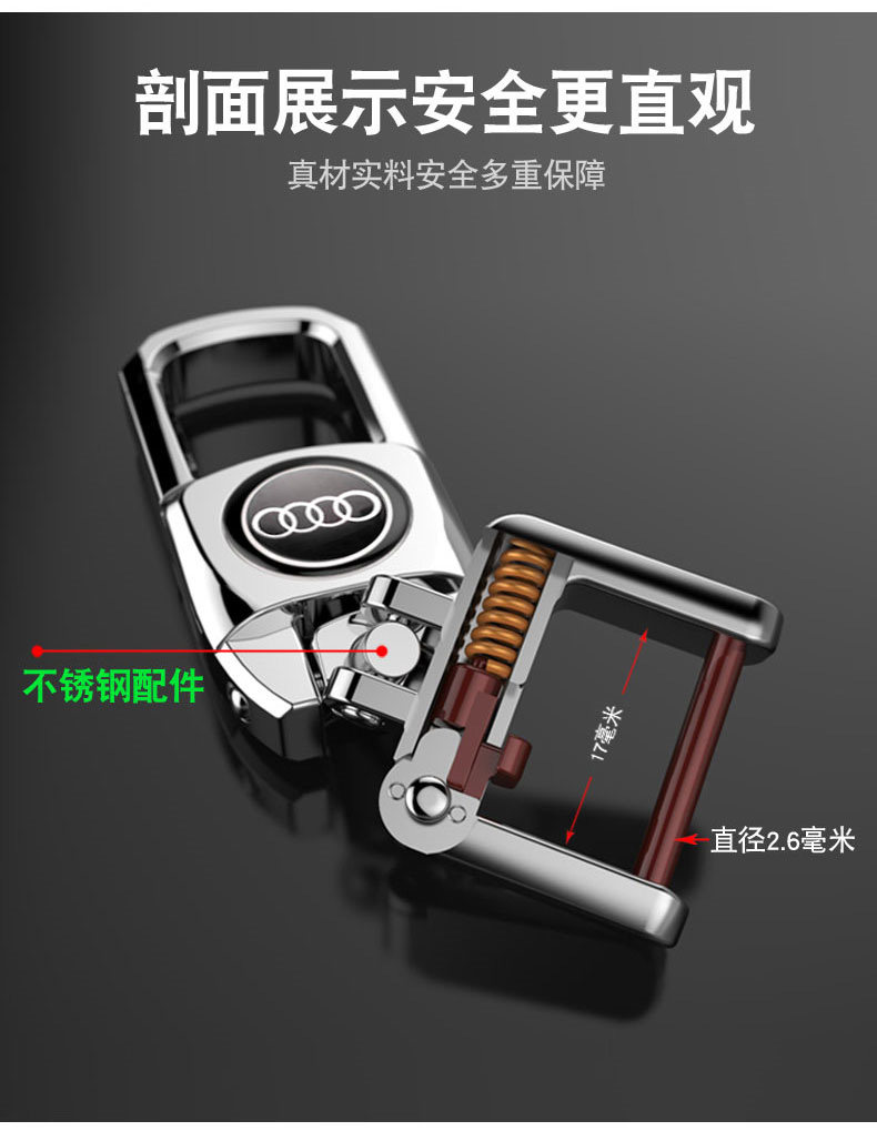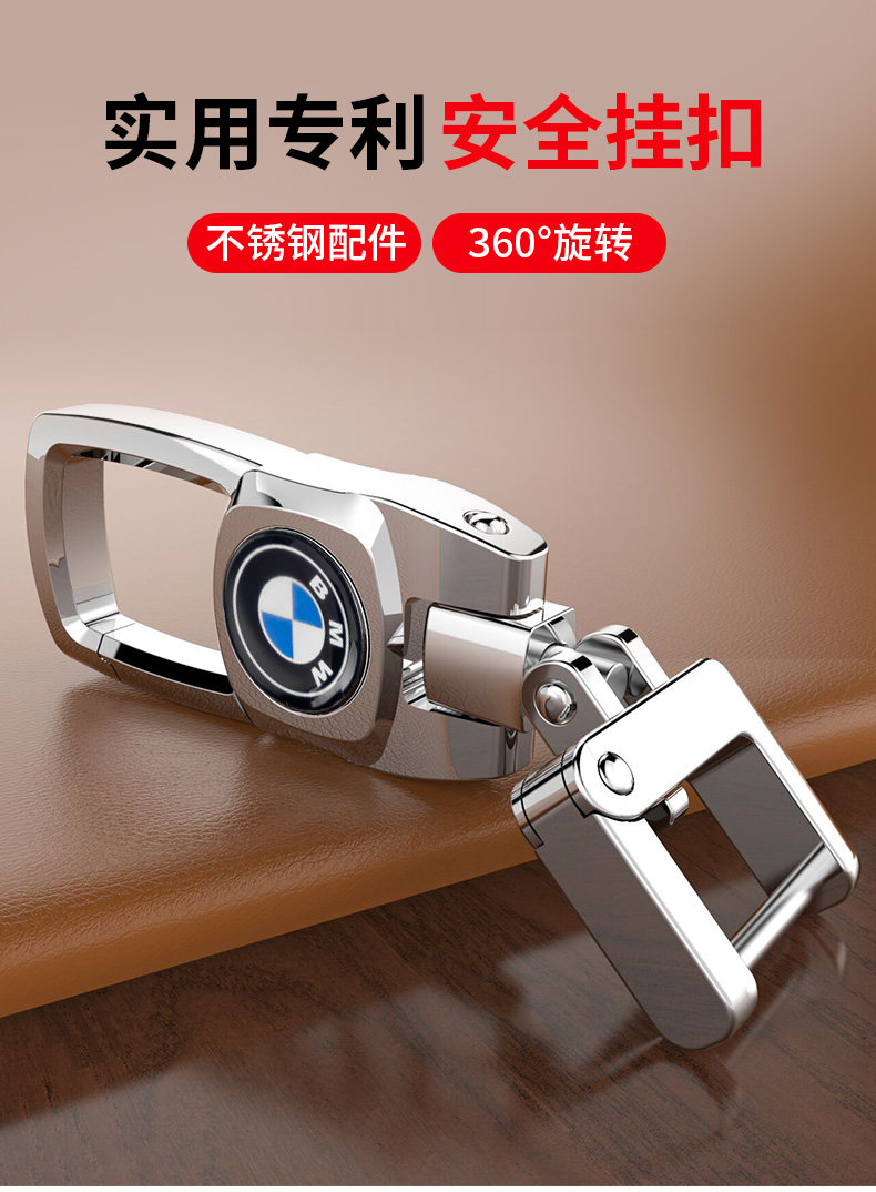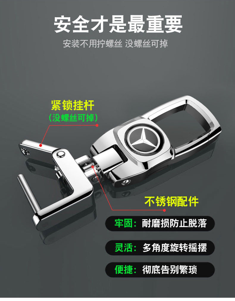 汽车钥匙扣,奔驰宝马奥迪大众丰田,360旋转腰挂件锁匙扣,不锈钢配件,专利结构,安装便捷,安全牢固。