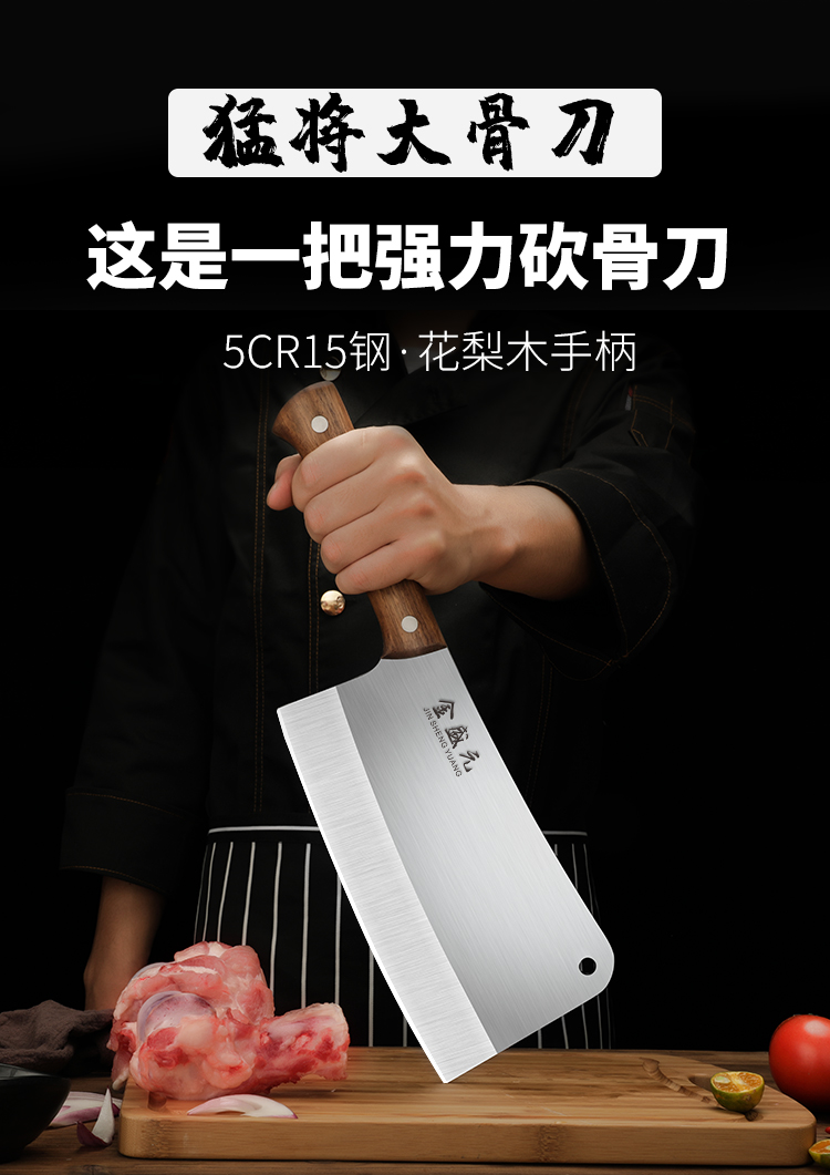 【德国工艺】米星厨猛将大骨刀菜刀,厚大锋利持久,强力砍骨,中号大号斧头刀,轻松应对猪大骨牛大骨羊排硬骨,砍剁不崩口,可切片切丝切段,全家放心之选!20年不换刀!