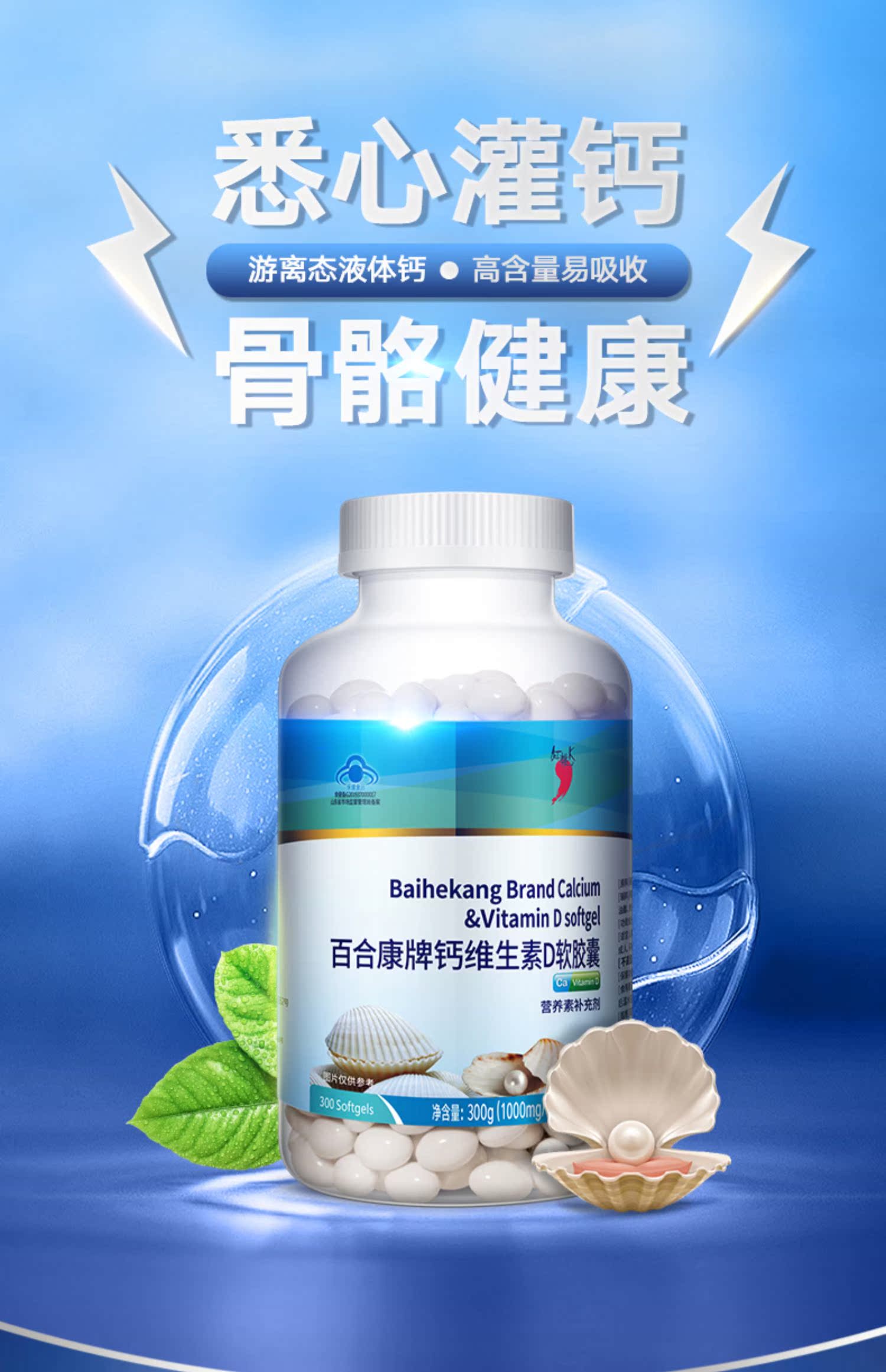 【增强体质,共抗疫情,300粒可够一年用量,4.9高分】游离液体钙,高含量好吸收,为补钙而来,维生素D助钙质吸收,精选深海珍珠,双重吸收,红桃K30年保健品牌,关注家人健康!