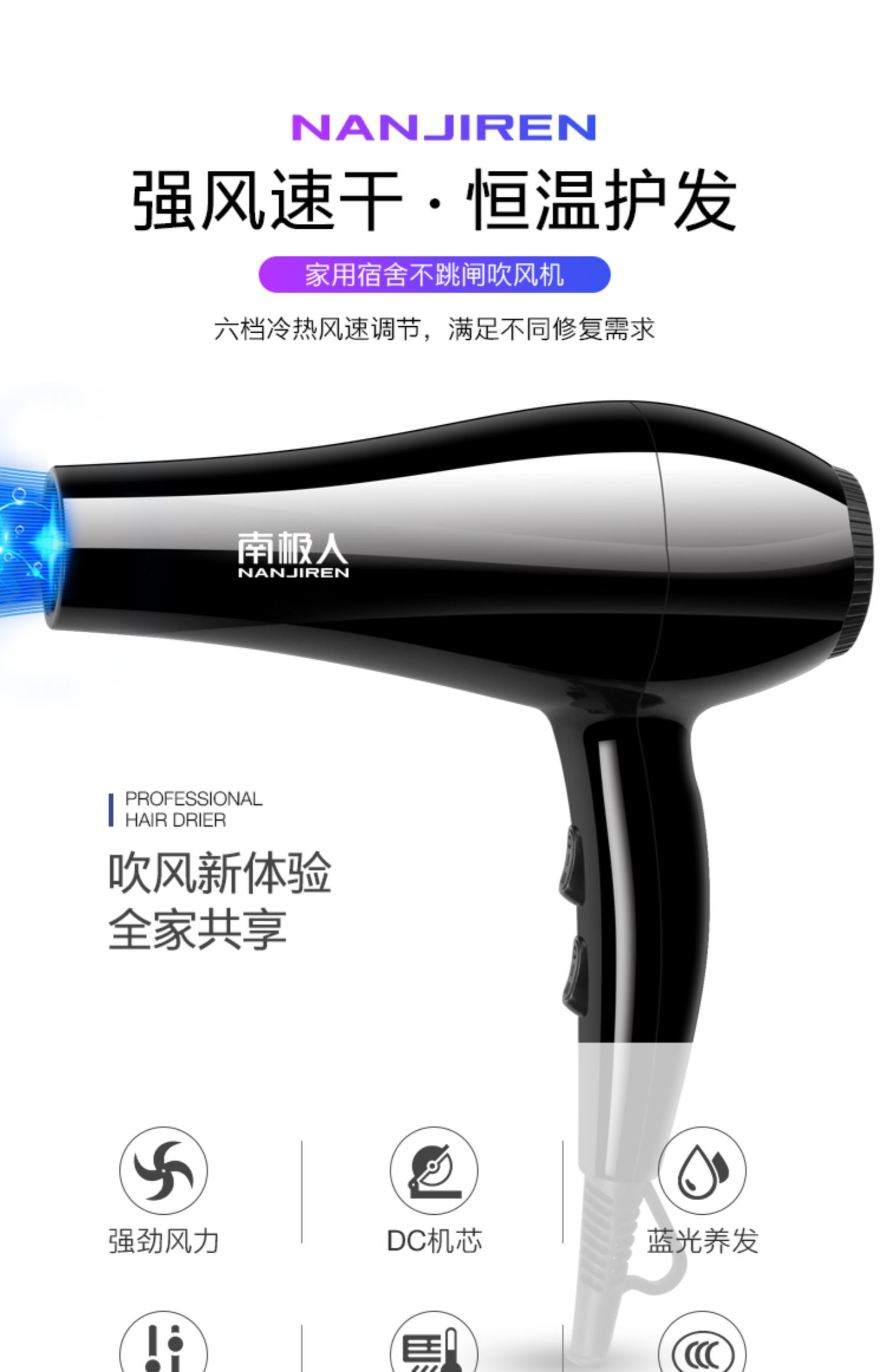 南极人大牌,买就送集风嘴!商家万年一遇跳楼价!19.9!发廊沙龙造型推荐款!2000W超大功率~恒温护发!告别长发湿哒哒~轻松吹干头发!顺发飘飘,更漂亮!买Ta~