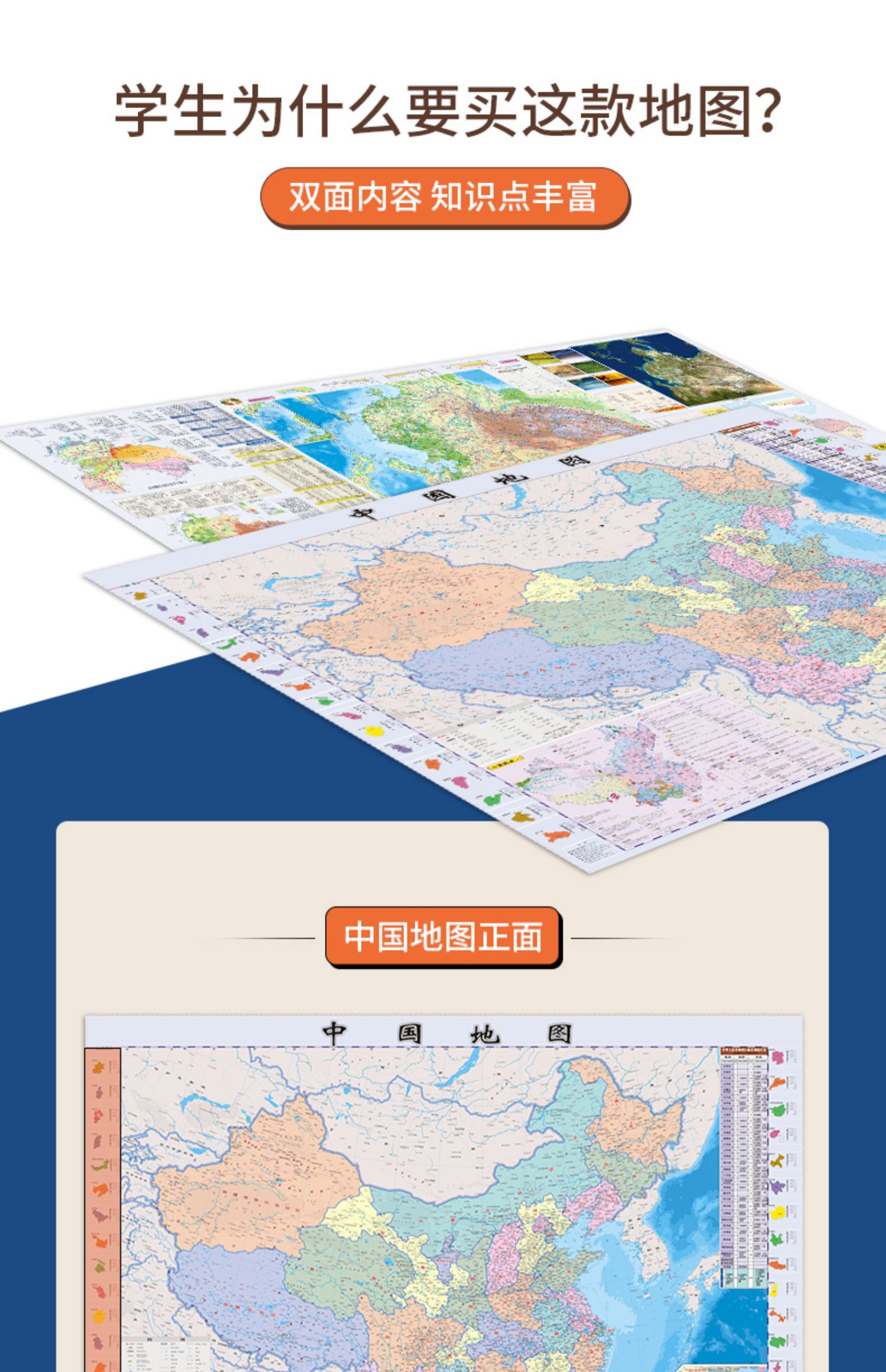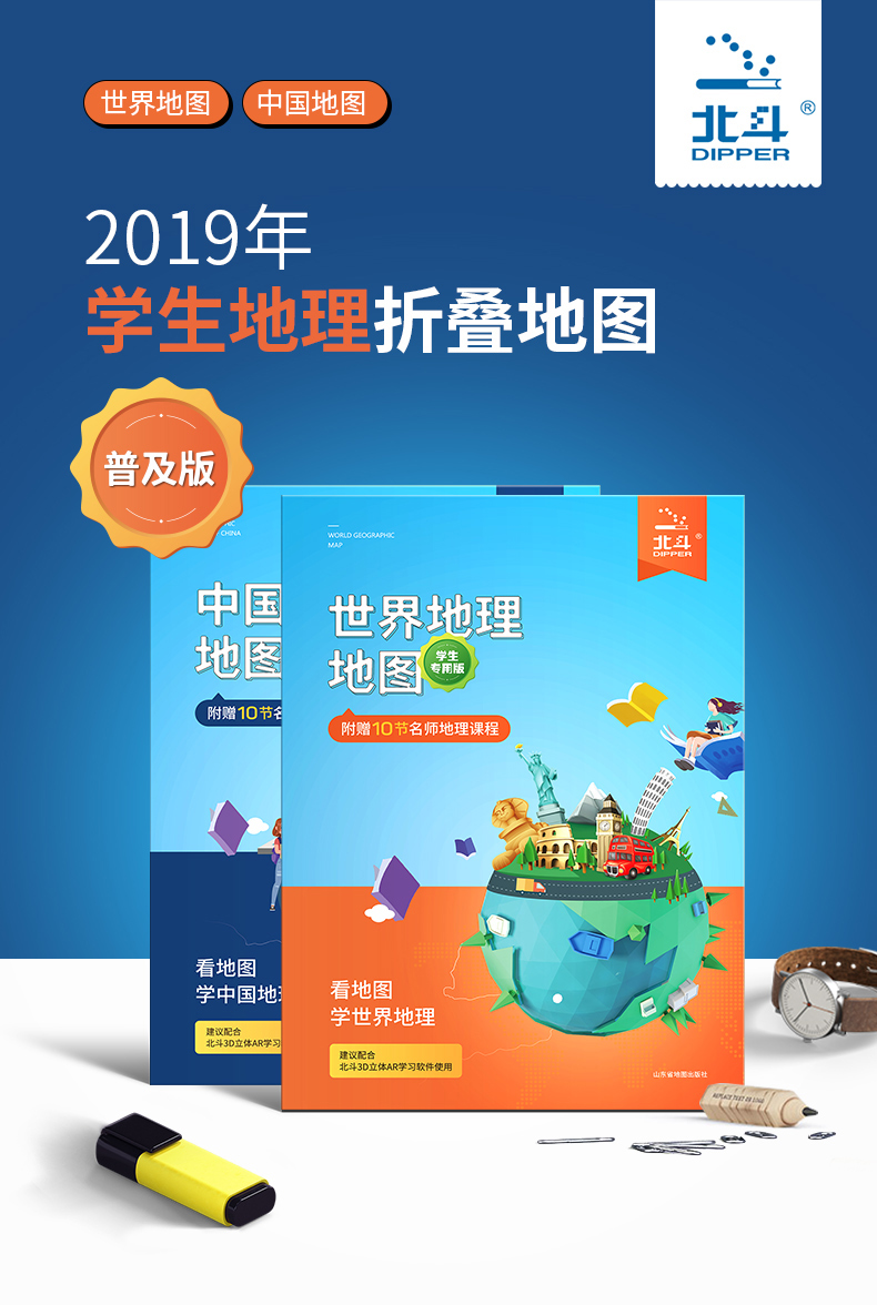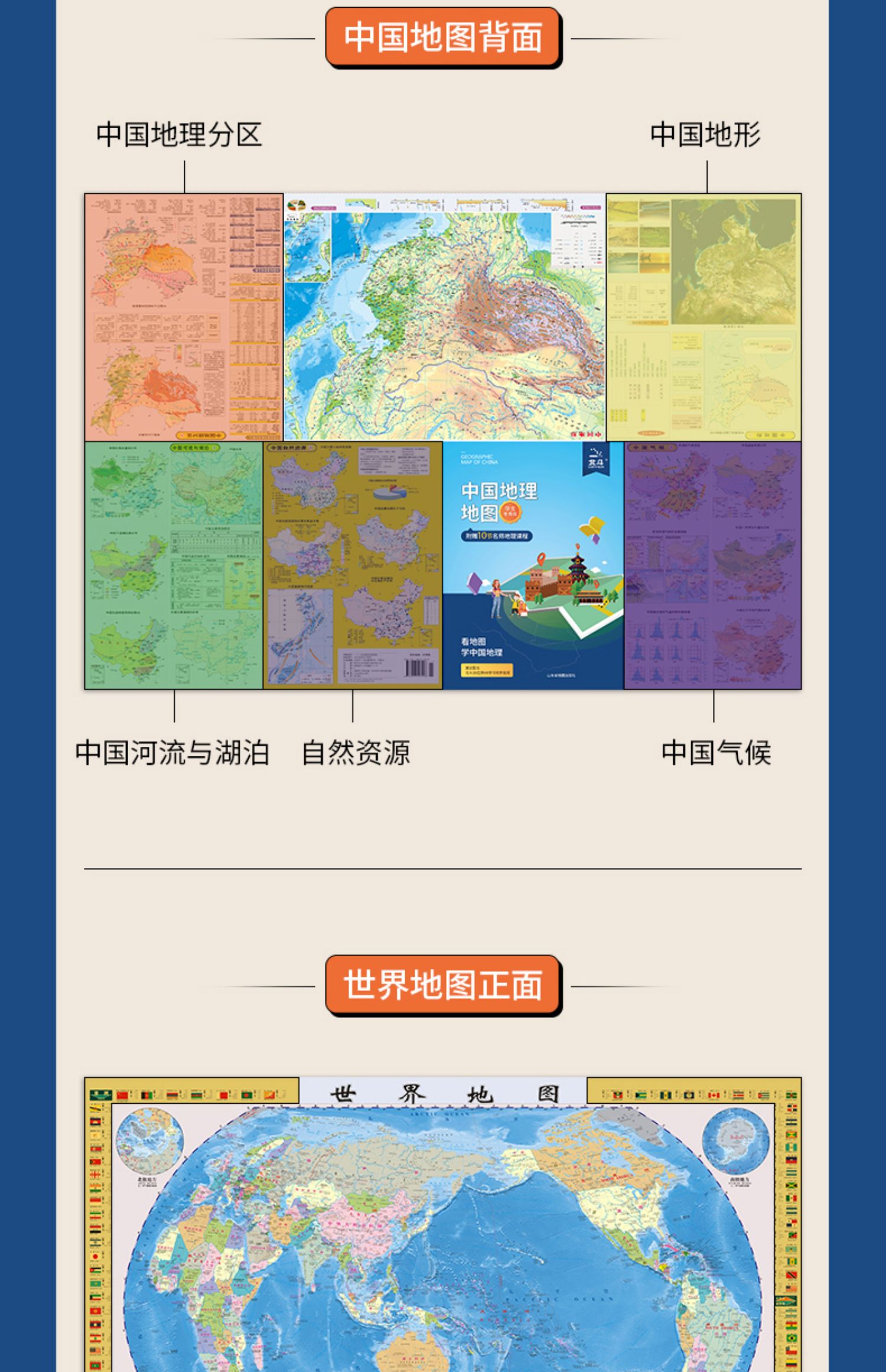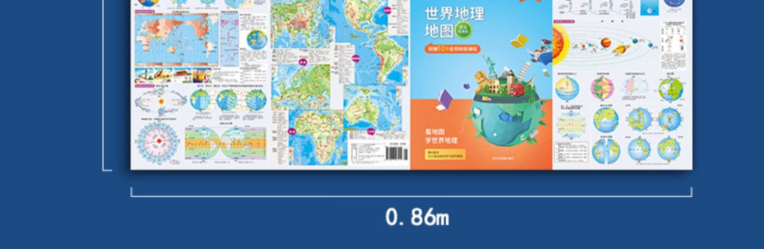 比新华书店超级划算,新课标中学生地理学习配套的~地形+政区二合一,内容多,知识点丰富!双面覆膜,防水耐磨!可折叠,方便携带!【赠运费险】